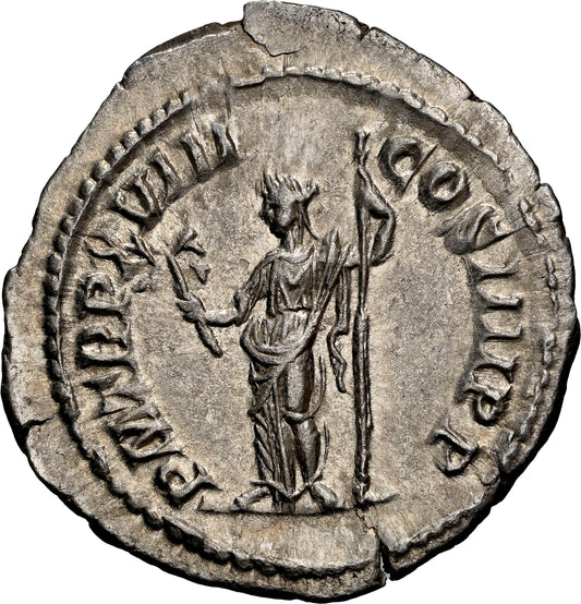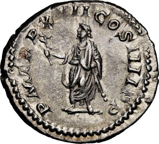 Roman Empire - Caracalla - Silver Denarius - NGC Ch AU - RIC:302