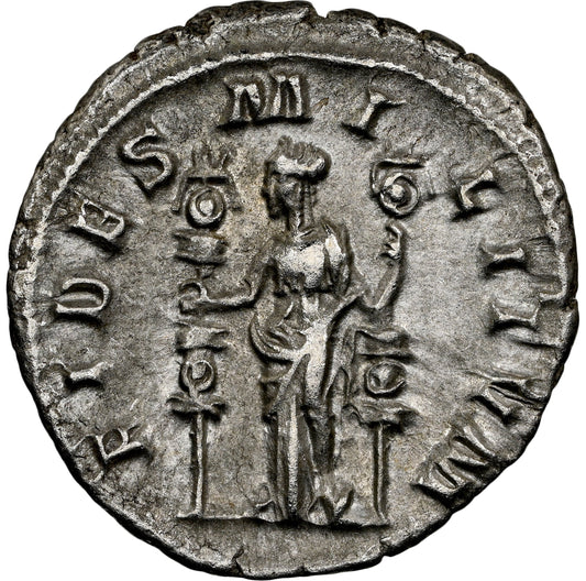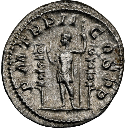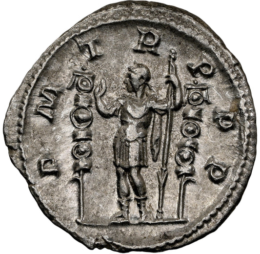 Gaius Julius Verus Maximinus "Thrax" ("the Thracian") - was Roman emperor from 235 to 238. His father was an accountant in the governor's office and sprang from ancestors who were Carpi (a Dacian tribe), a people whom Diocletian would eventually drive from their ancient abode (in Dacia) and transfer to Pannonia. Maximinus was the commander of the Legio IV Italica when Severus Alexander was assassinated by his own troops in 235. The Pannonian army then elected Maximinus emperor.