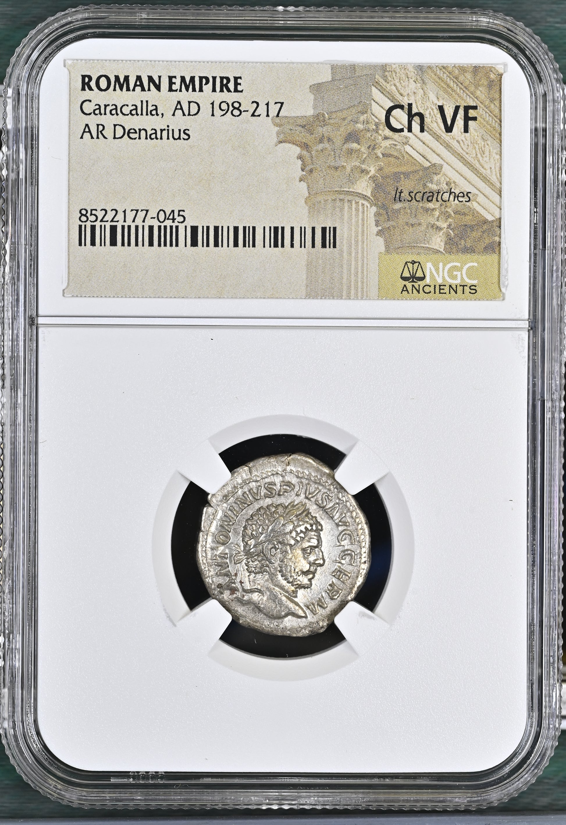 Roman Empire - Caracalla - Silver Denarius - NGC Ch VF
