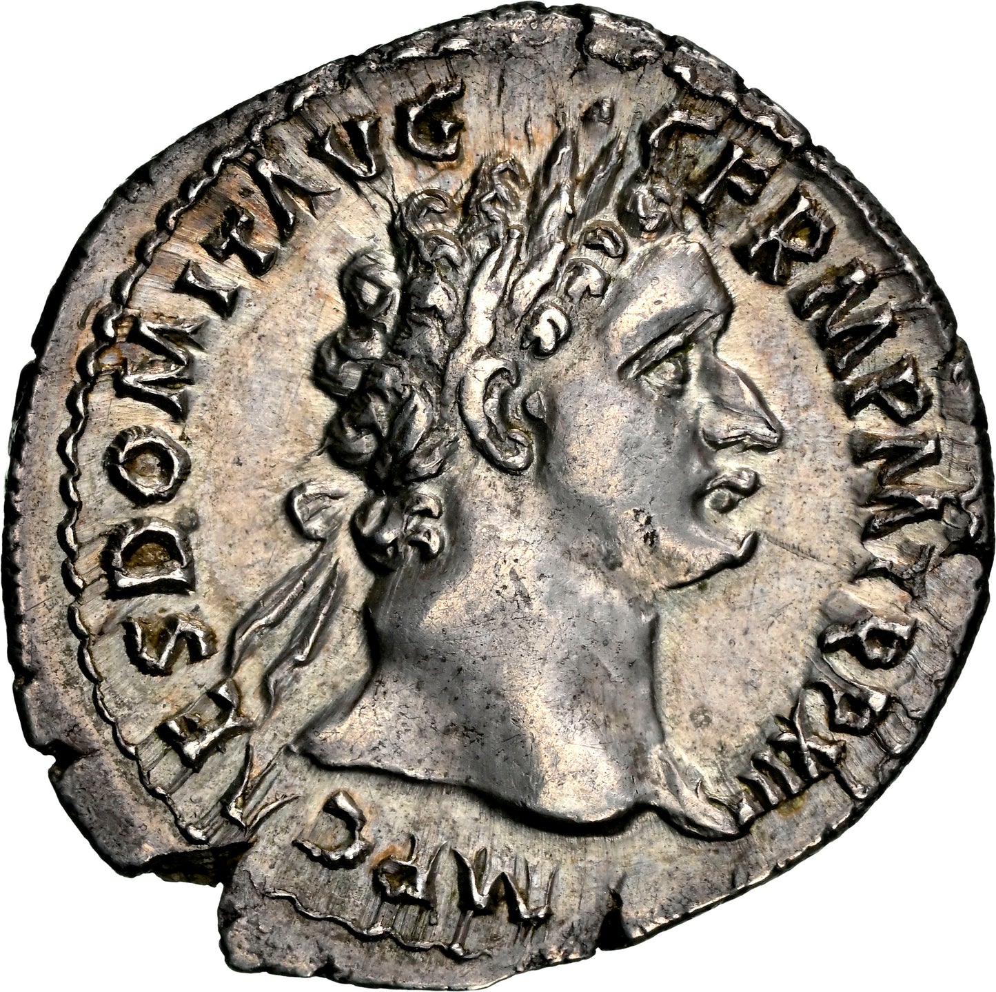 Roman Empire - Domitian - Silver Denarius - NGC Ch F - RIC:266