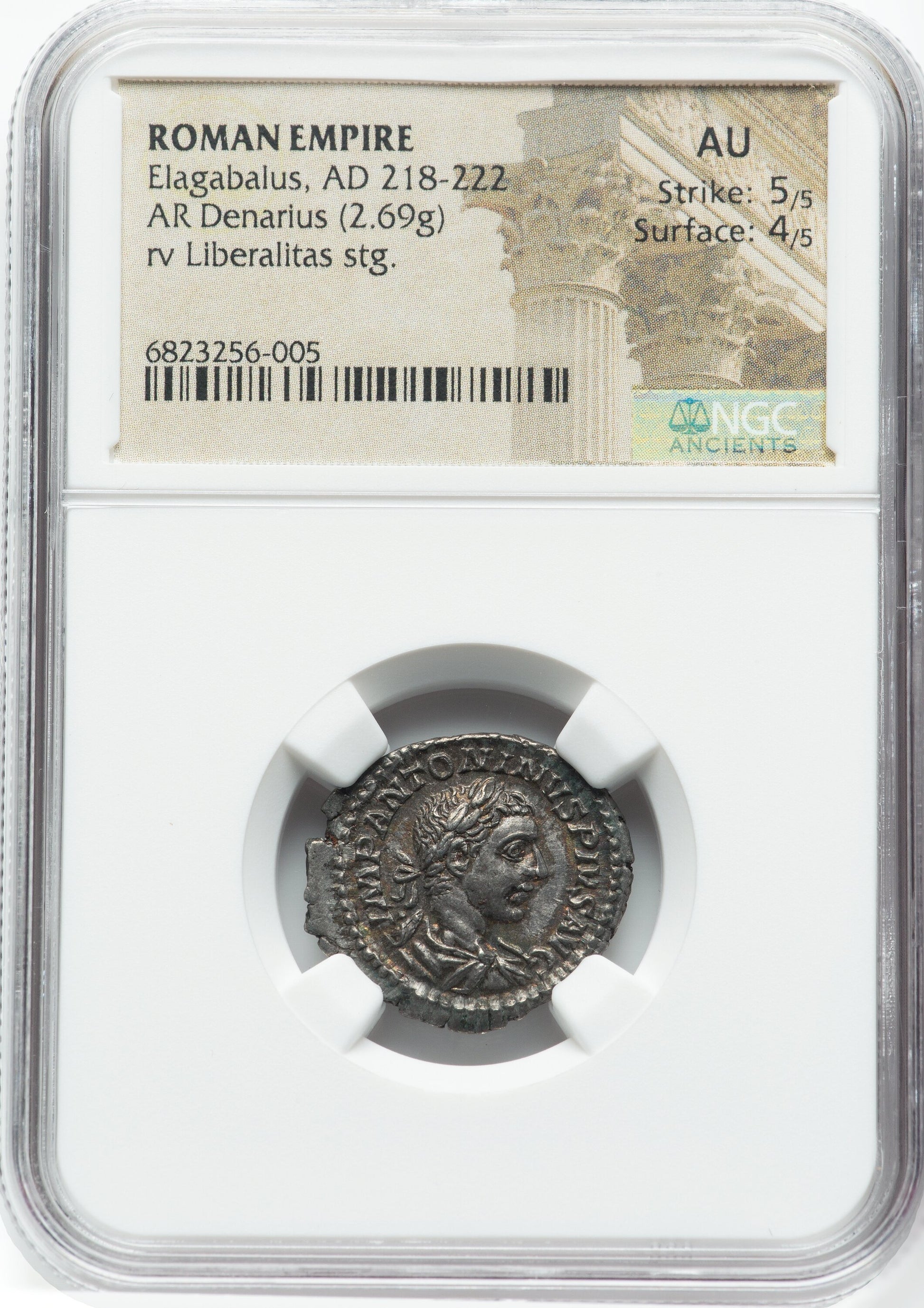 Roman Empire - Elagabalus - Silver Denarius - NGC AU - RIC:100