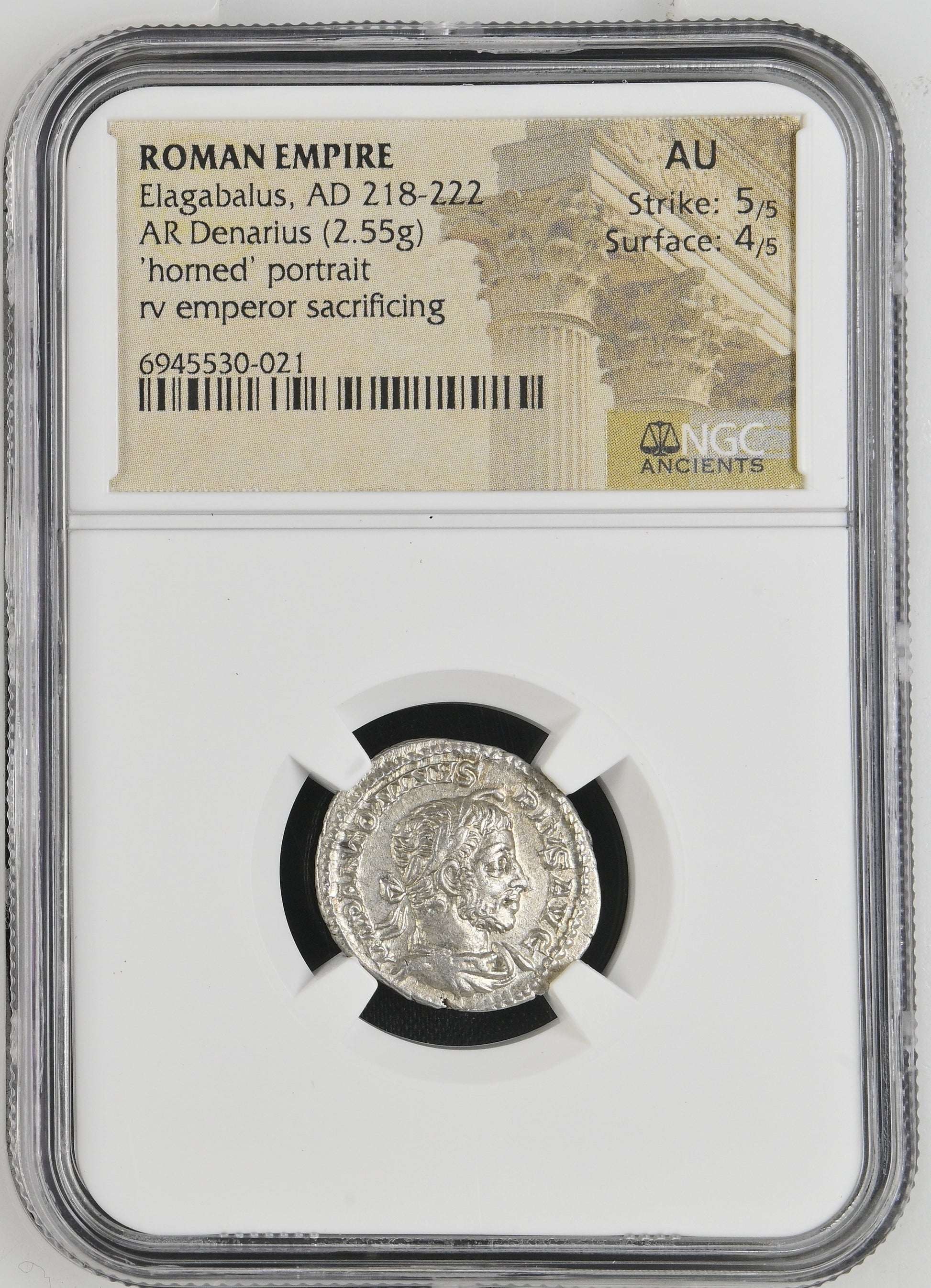Roman Empire - Elagabalus - Silver Denarius - NGC AU - RIC:131
