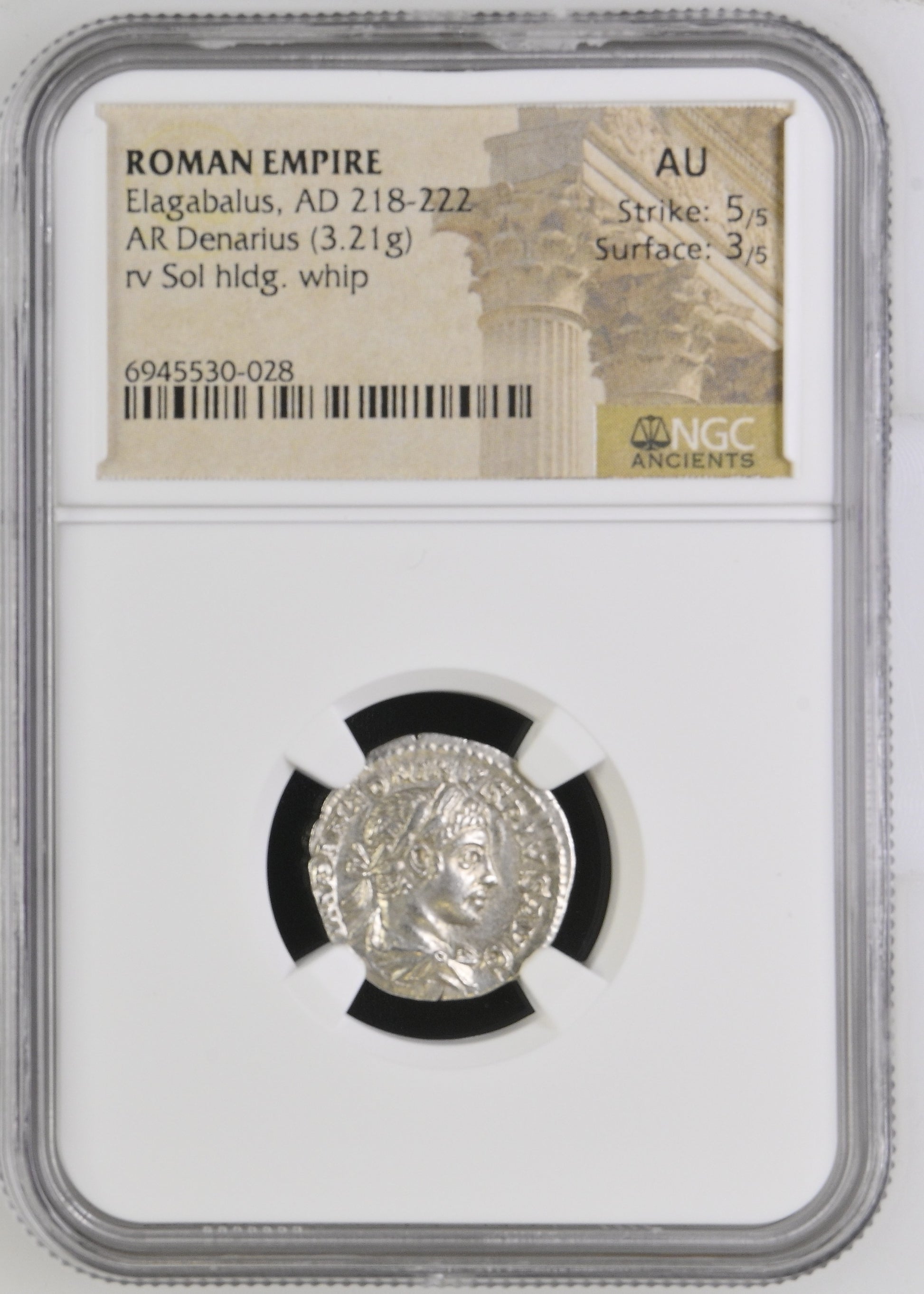 Roman Empire - Elagabalus - Silver Denarius - NGC AU - RIC:28
