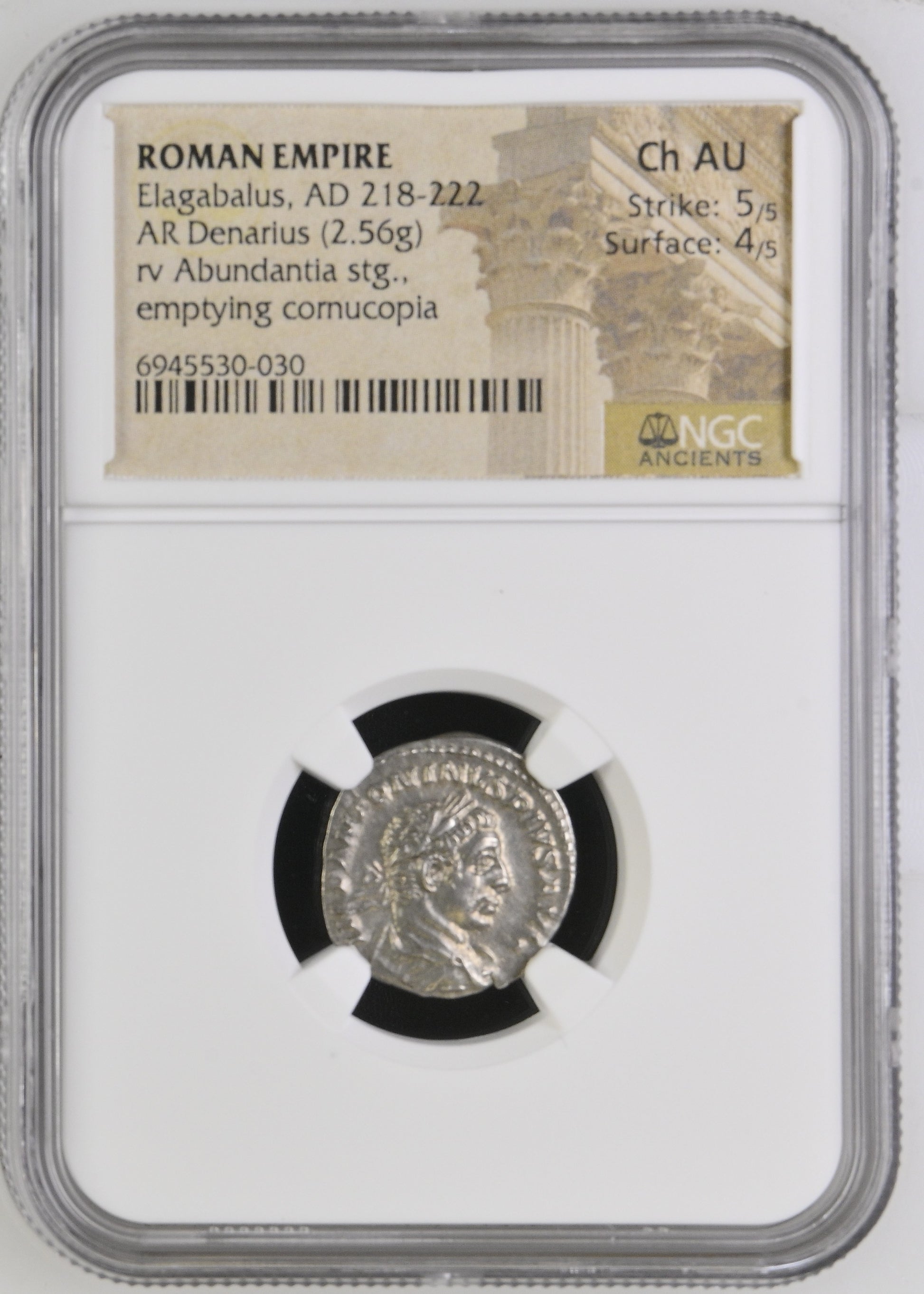 Roman Empire - Elagabalus - Silver Denarius - NGC Ch AU - RIC:56