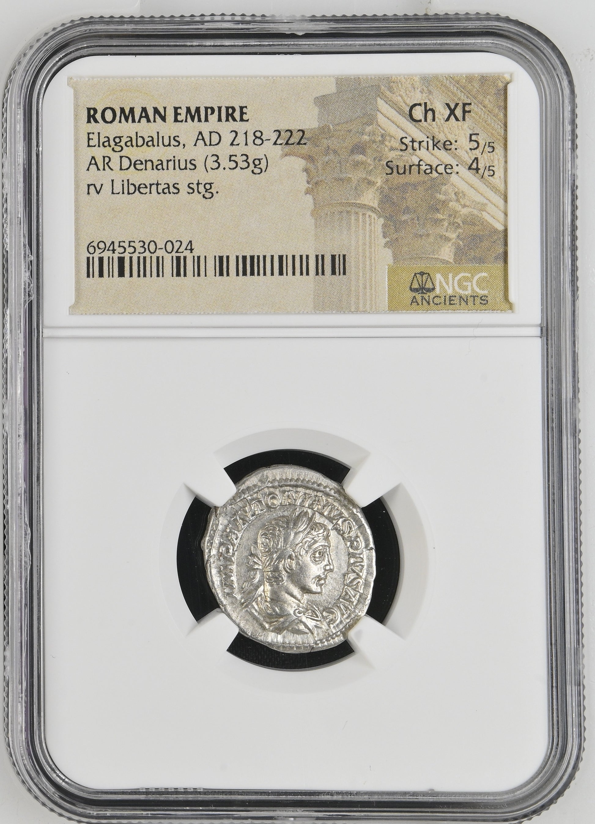 Roman Empire - Elagabalus - Silver Denarius - NGC Ch XF - RIC:107