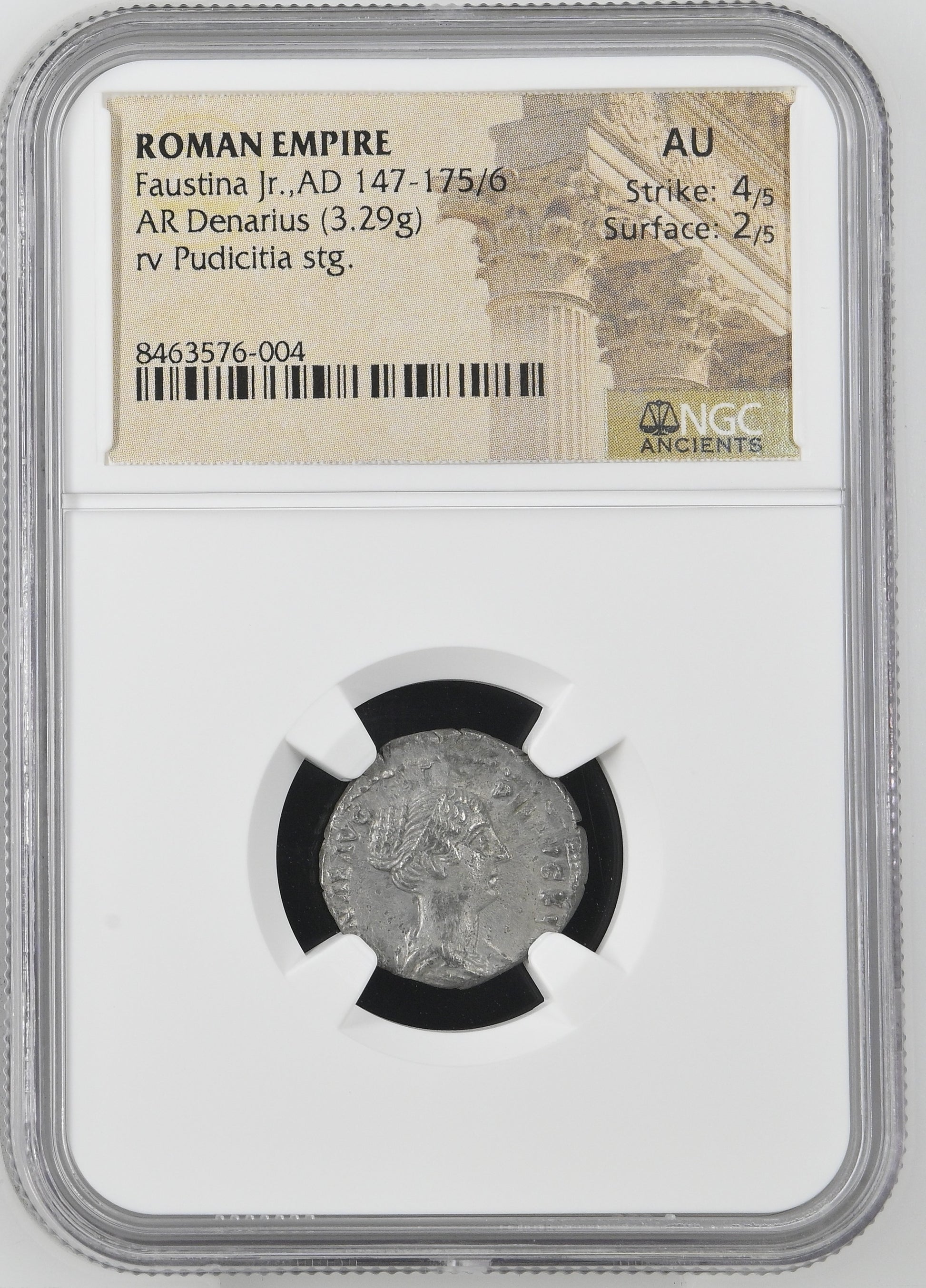 Roman Empire - Faustina II - Silver Denarius - NGC AU - RIC:507b