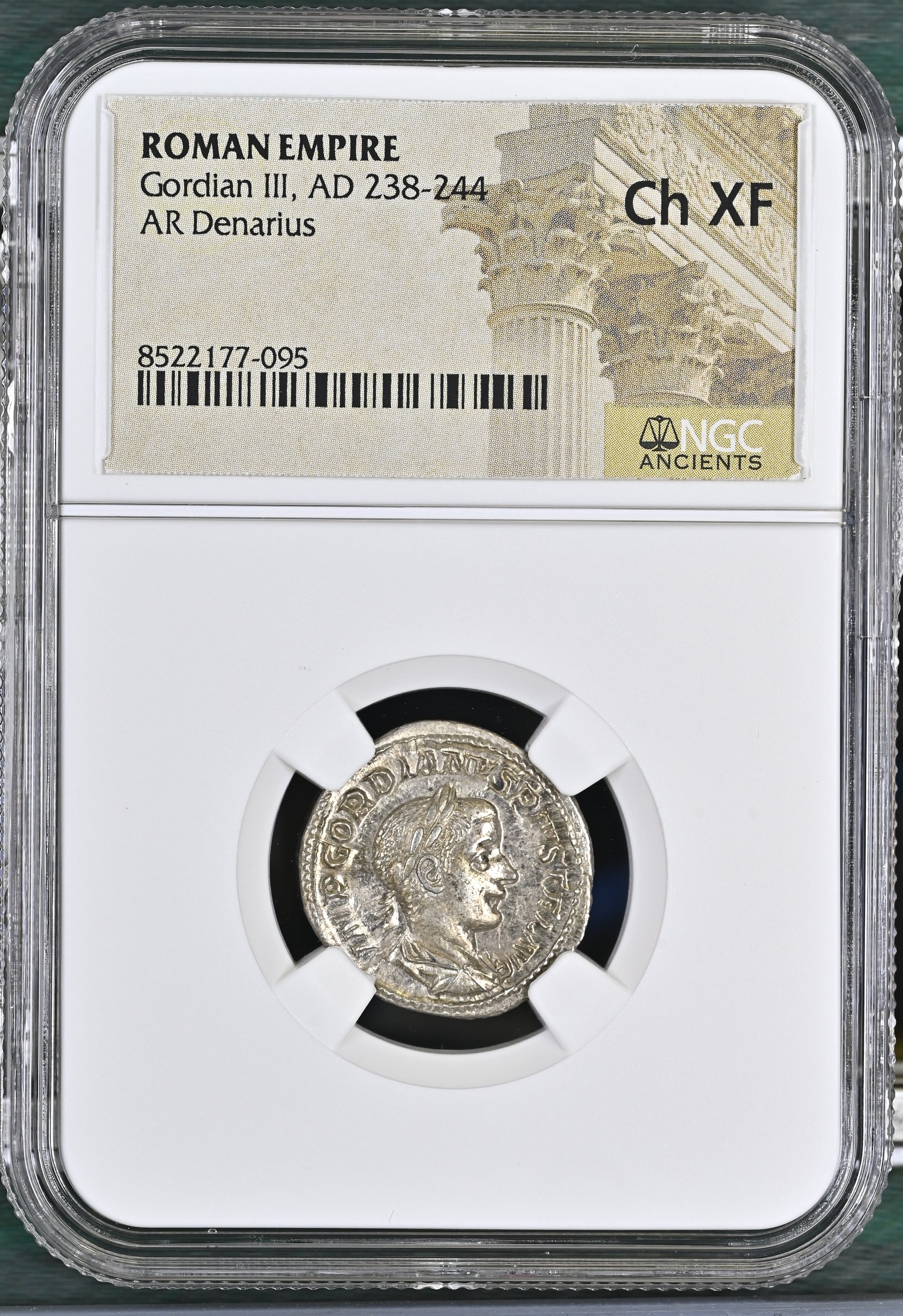 Roman Empire - Gordian III - Silver Denarius - NGC Ch XF