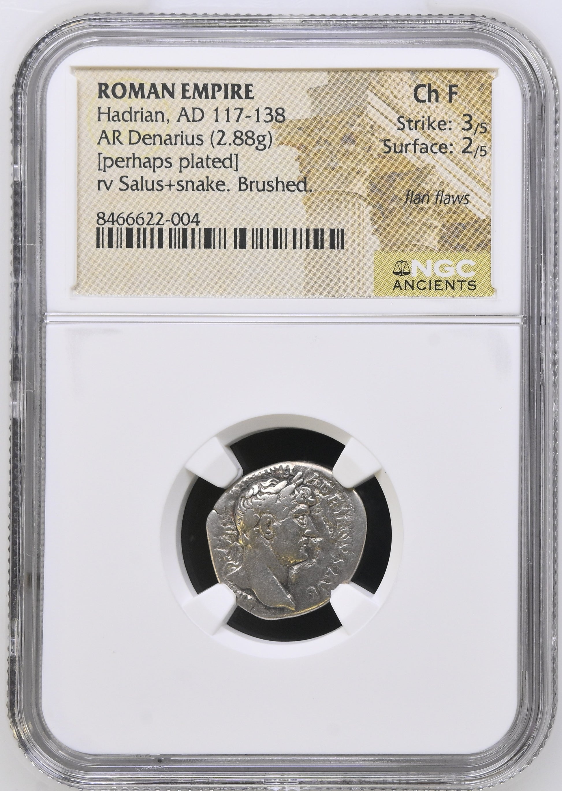 Roman Empire - Hadrian - Perhaps Plated Denarius - NGC Ch F - RIC:374