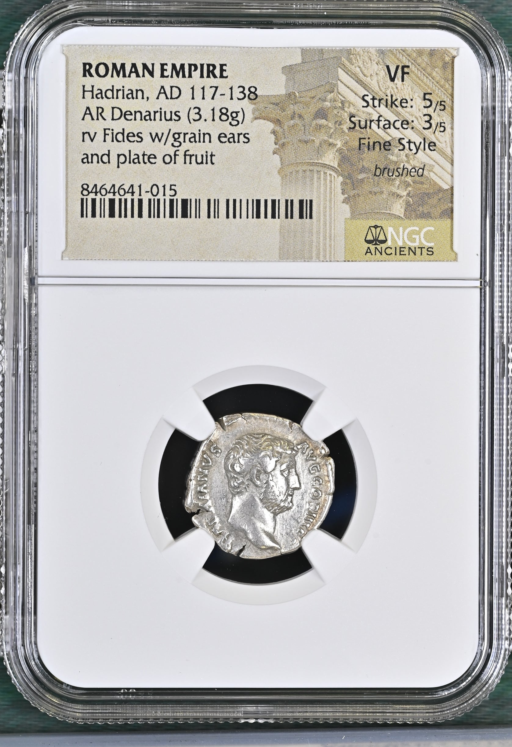 Roman Empire - Hadrian - Silver Denarius - NGC VF - RIC:2335 - Fine Style