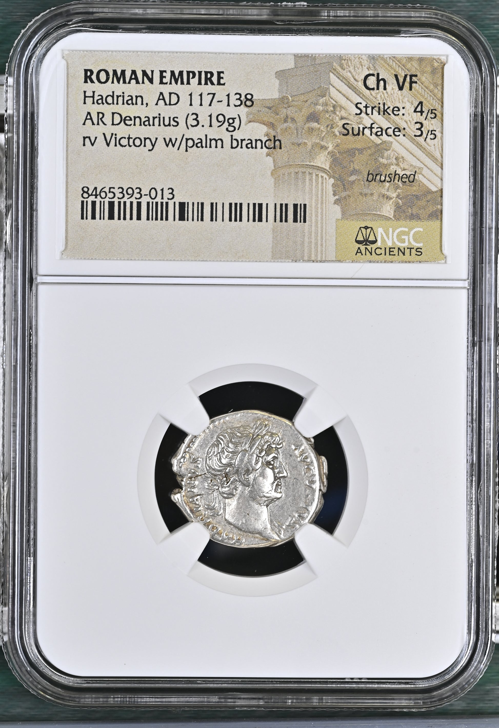 Roman Empire - Hadrian - Silver Denarius - NGC Ch VF - RIC:848