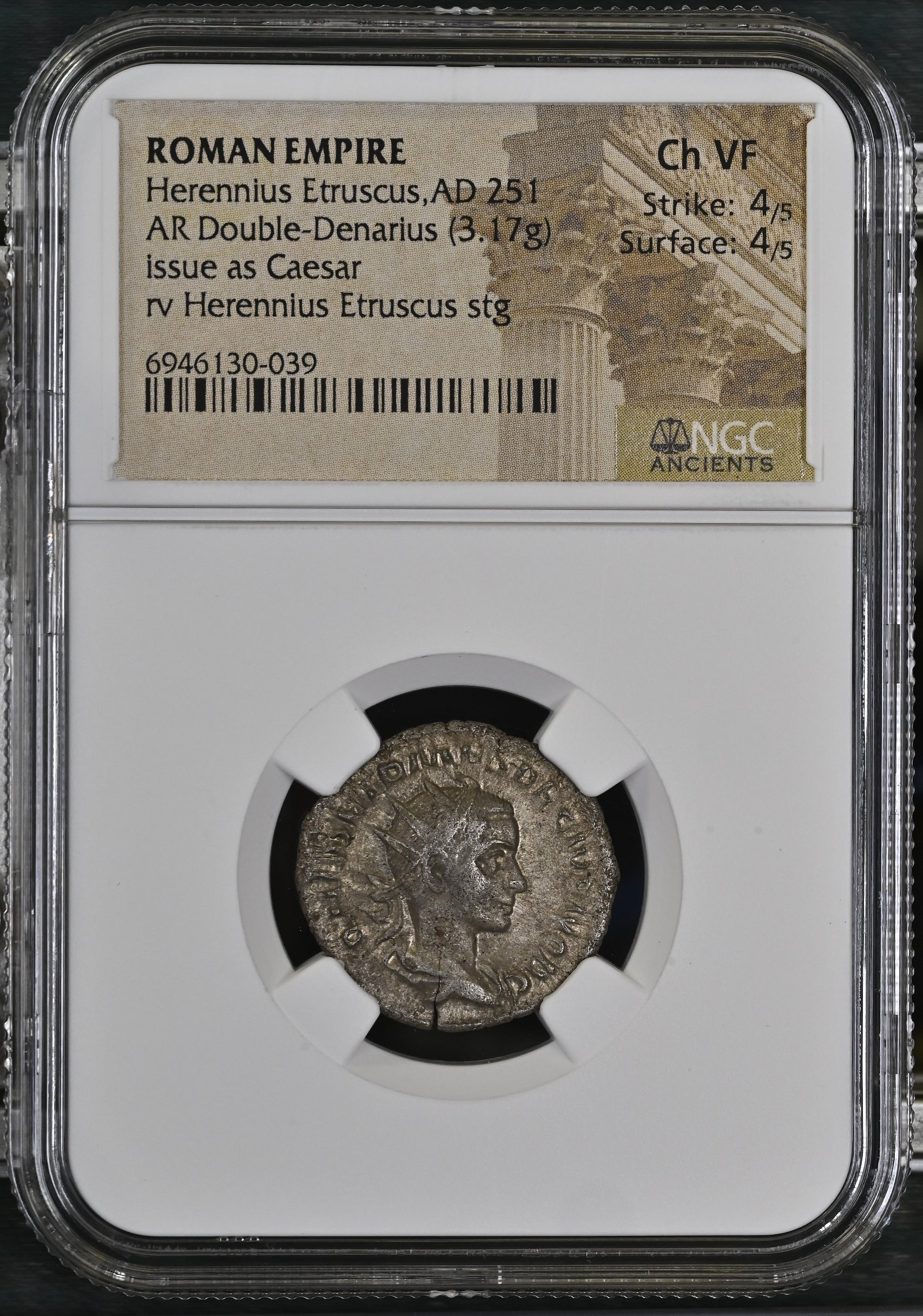 Roman Empire - Herennius Etruscus - Silver Double-Denarius - NGC Ch VF - RIC:147c