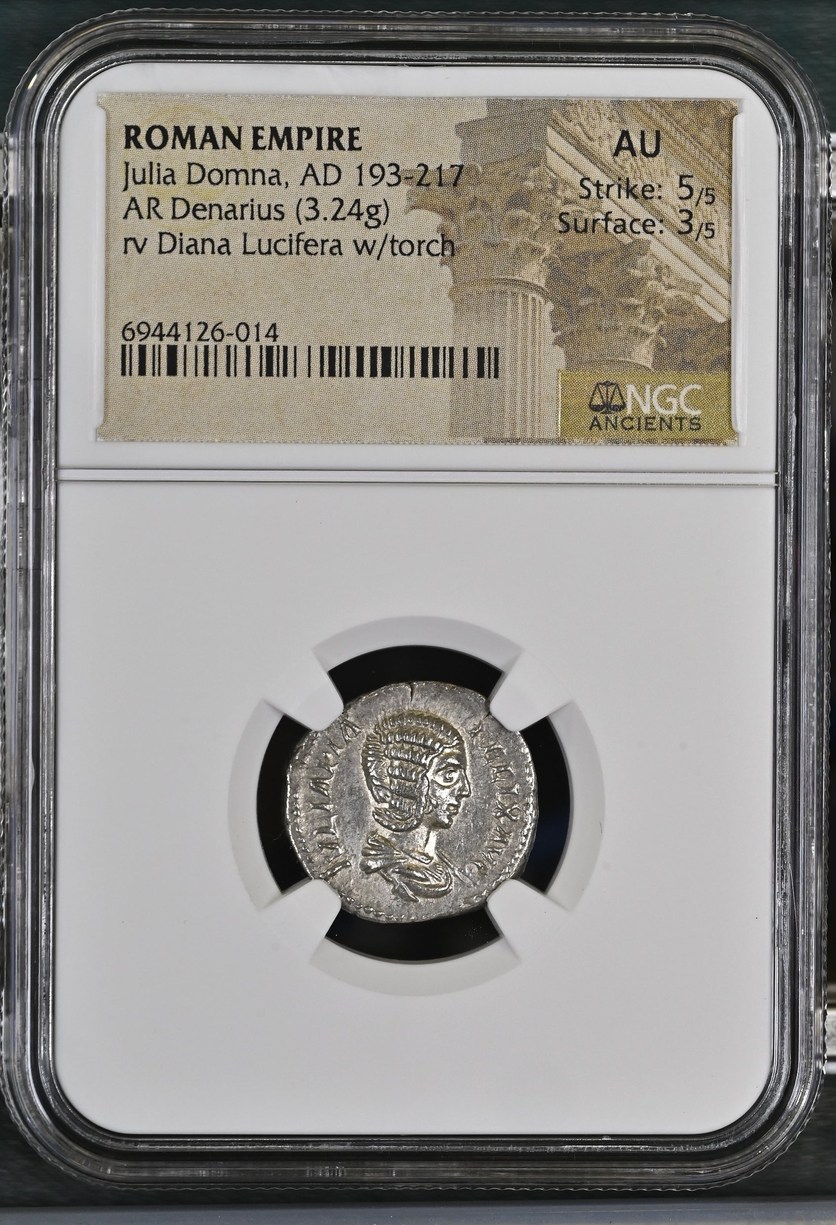Roman Empire - Julia Domna - Silver Denarius - NGC AU - RIC:373