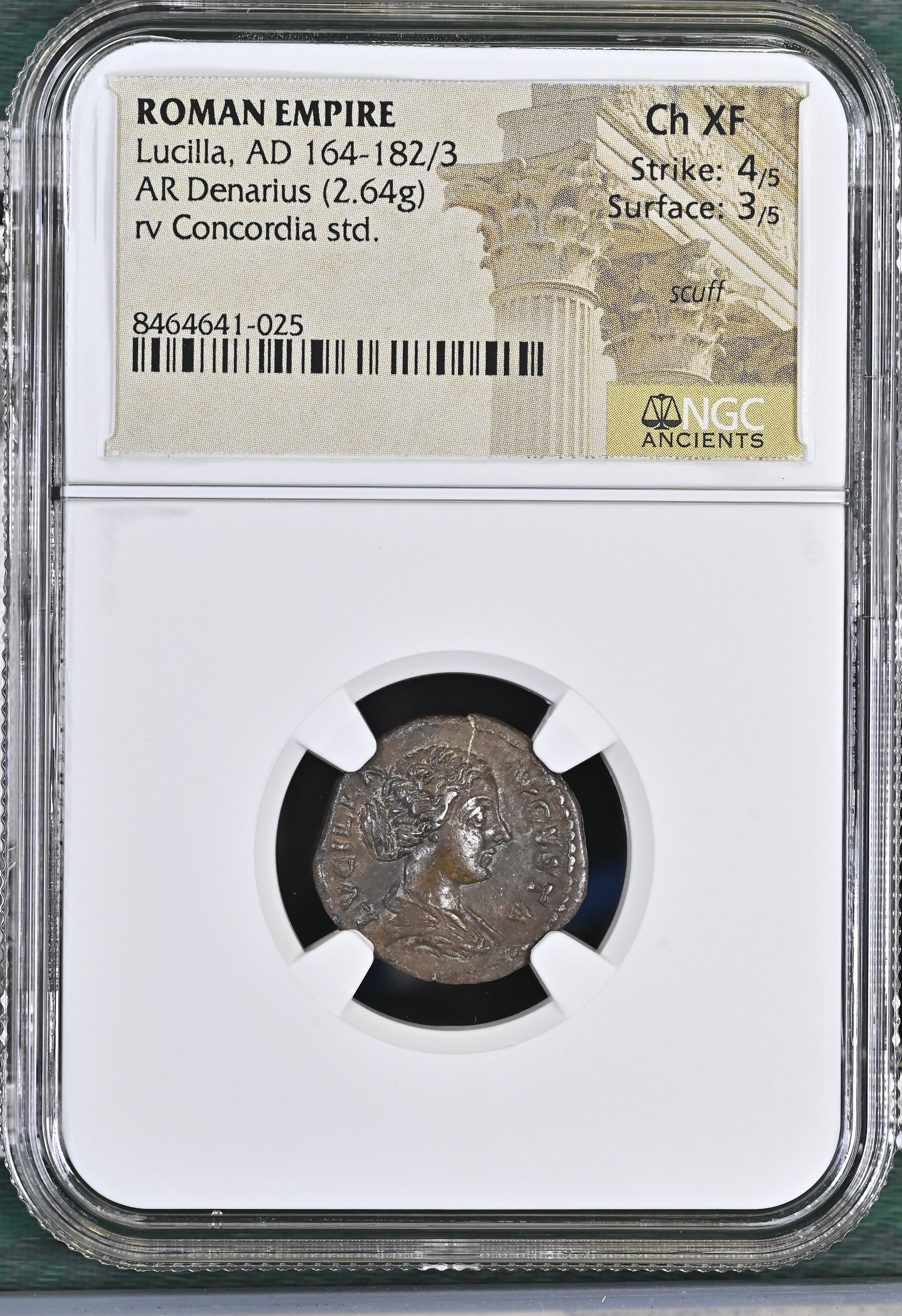 Roman Empire - Lucilla - Silver Denarius - NGC Ch XF