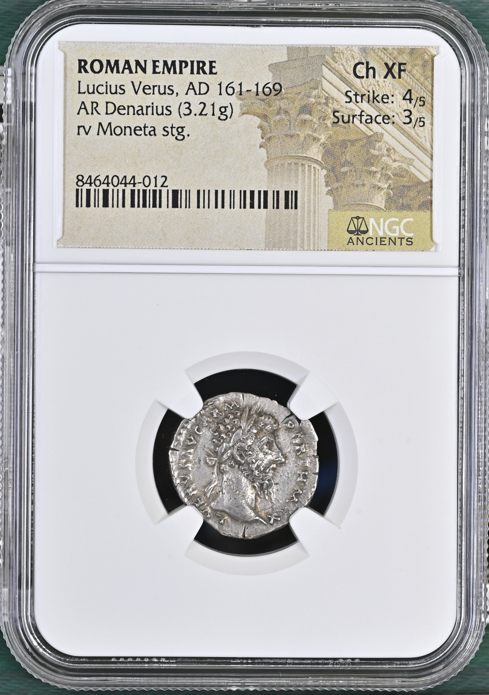 Roman Empire - Lucius Verus - Silver Denarius - NGC Ch XF - RIC:590