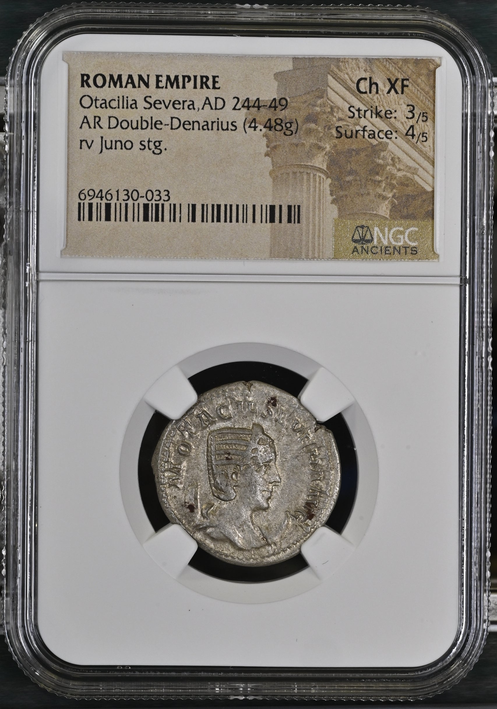 Roman Empire - Otacilia Severa - Silver Double-Denarius - NGC Ch XF - RIC:127
