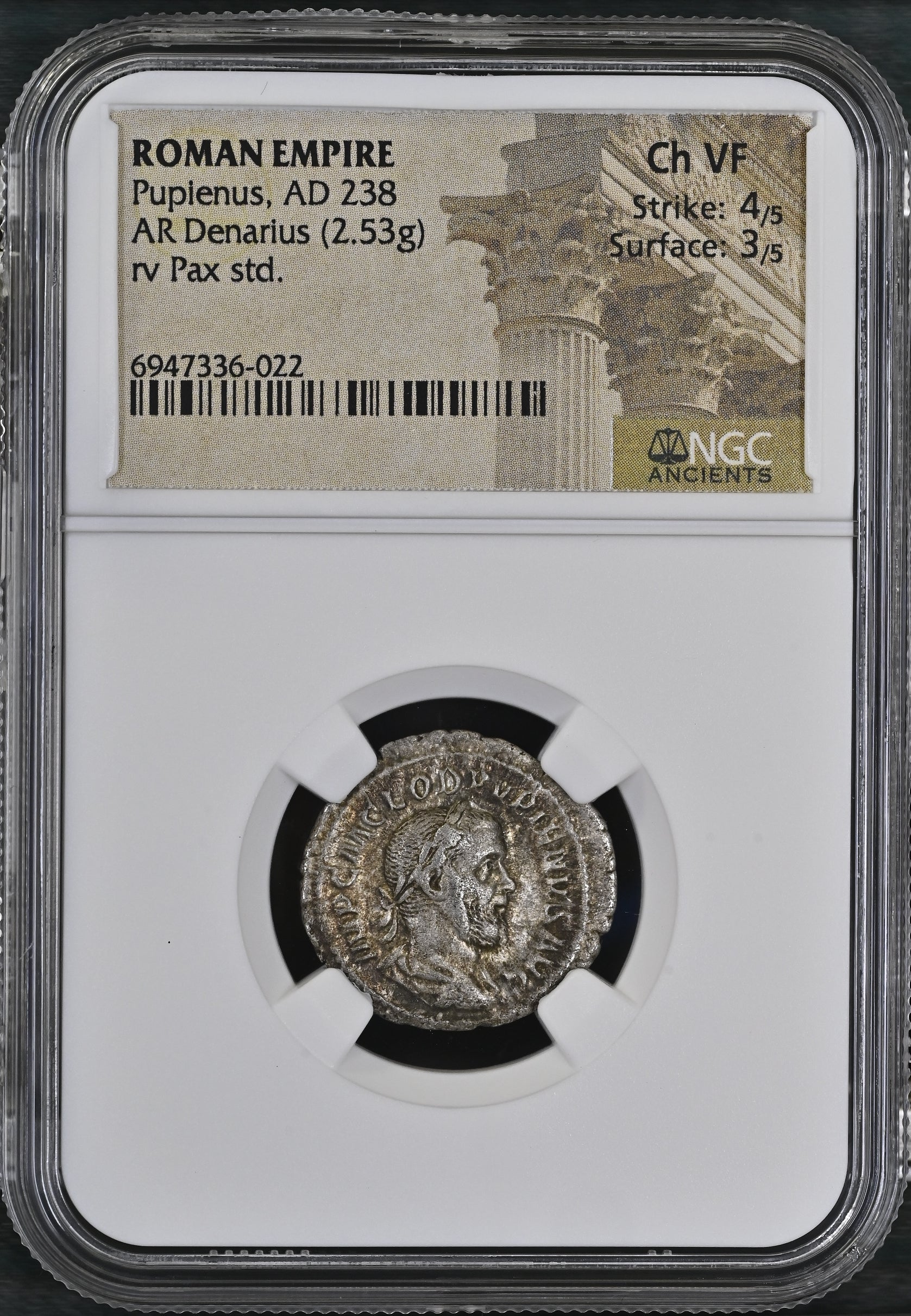Roman Empire - Pupienus - Silver Denarius - NGC Ch VF - RIC:4