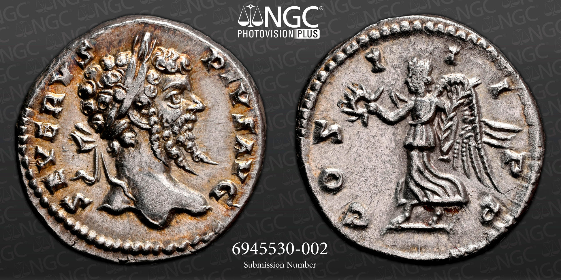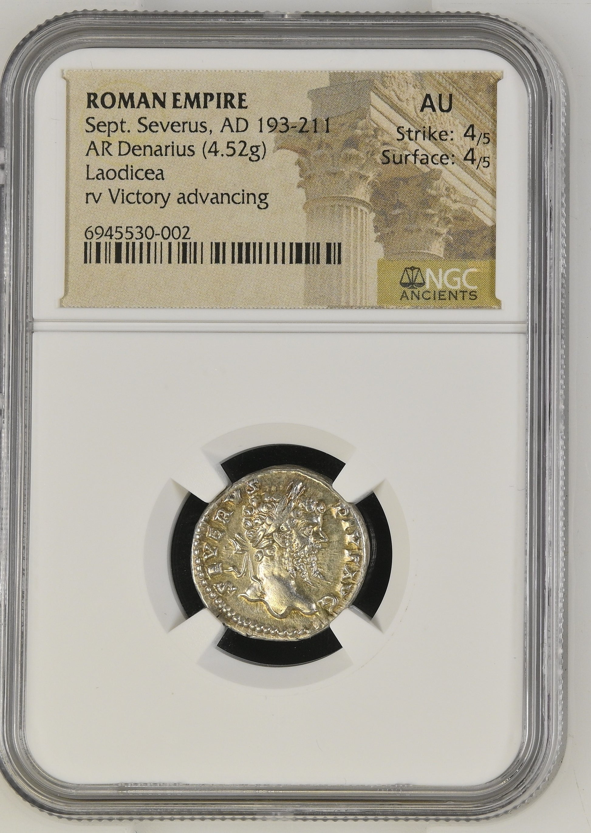 Roman Empire - Septimius Severus - Silver Denarius - NGC AU - RIC:176