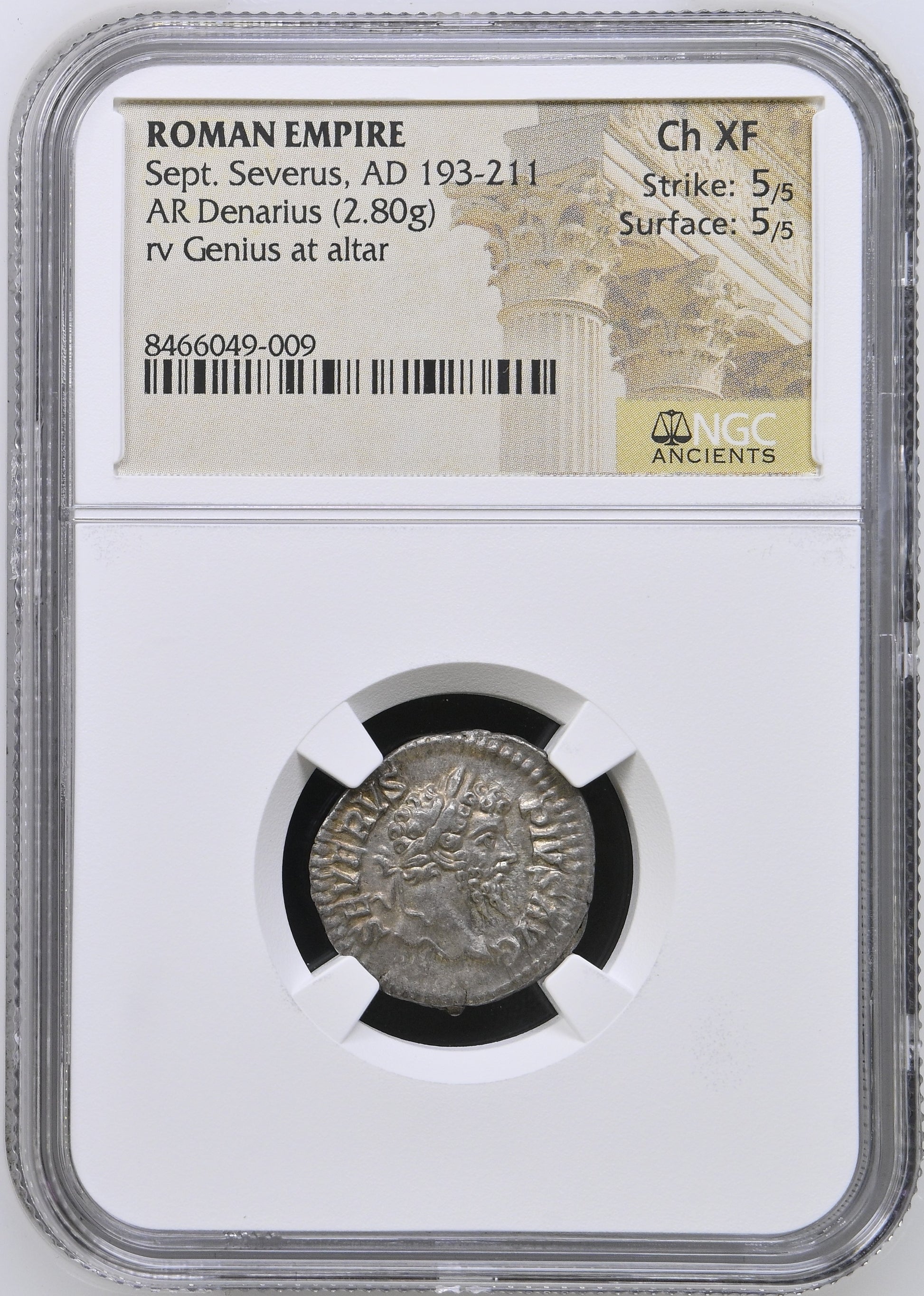 Roman Empire - Septimius Severus - Silver Denarius - NGC Ch XF - RIC:195