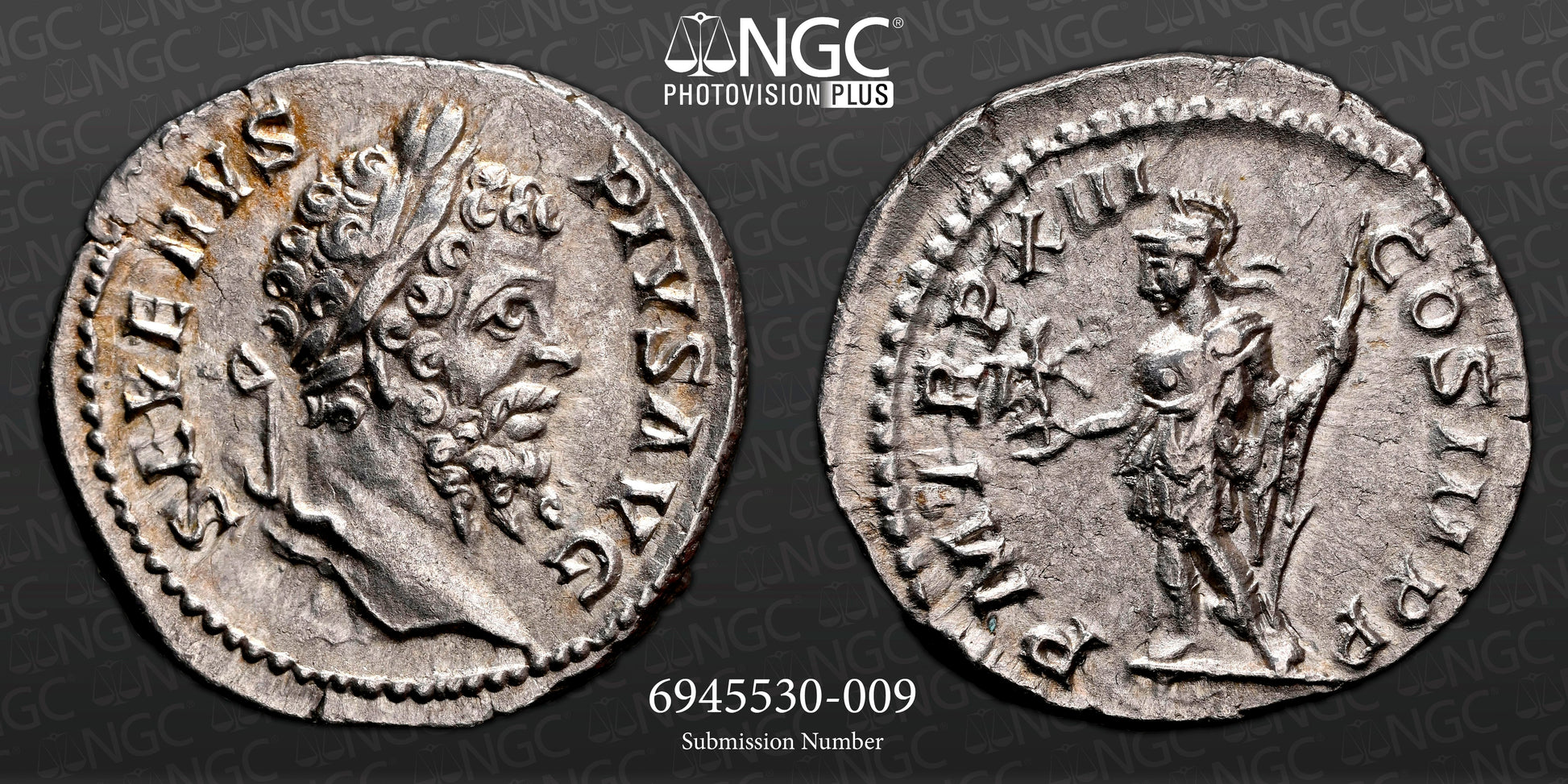 Roman Empire - Septimius Severus - Silver Denarius - NGC Ch XF - RIC:197