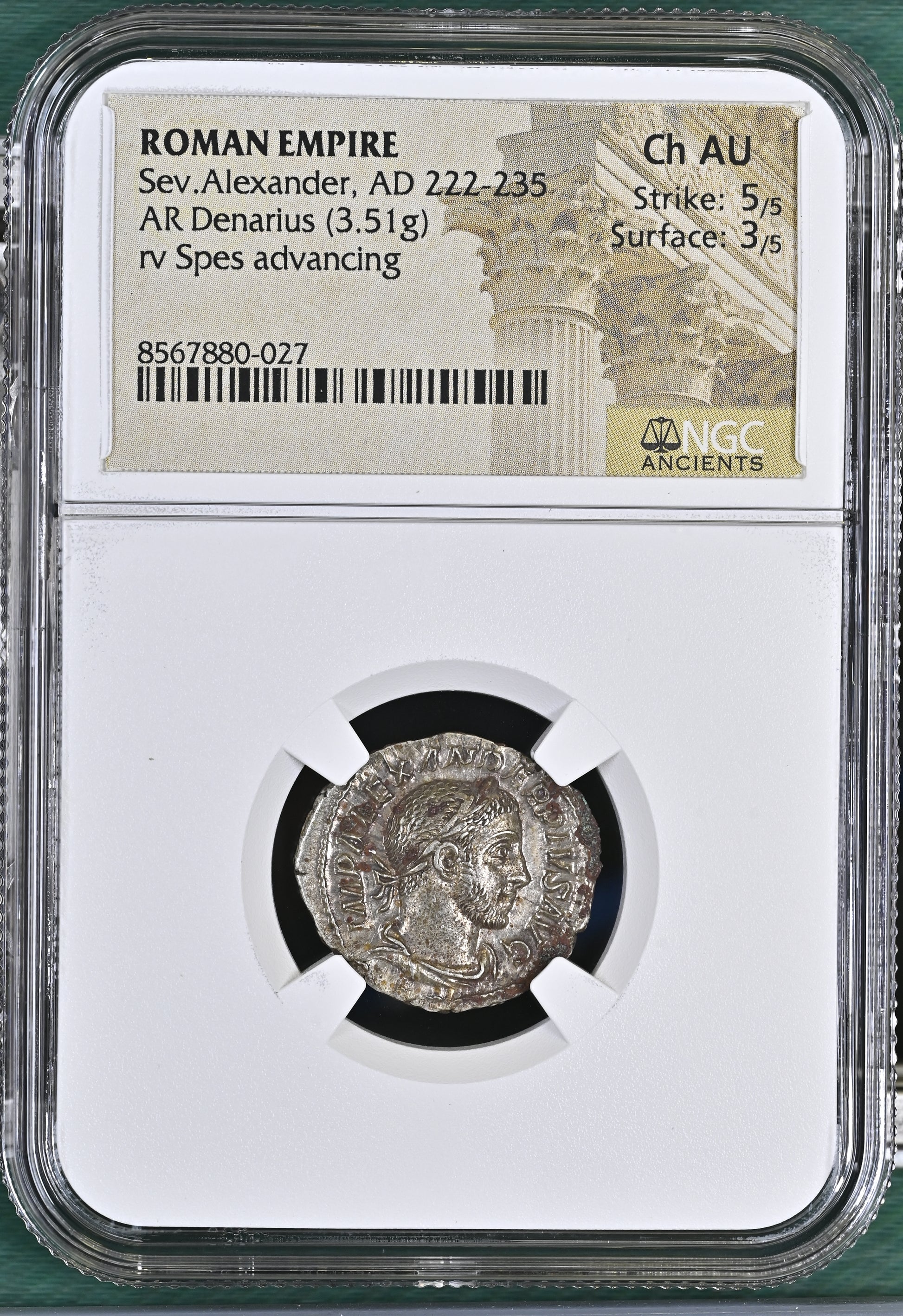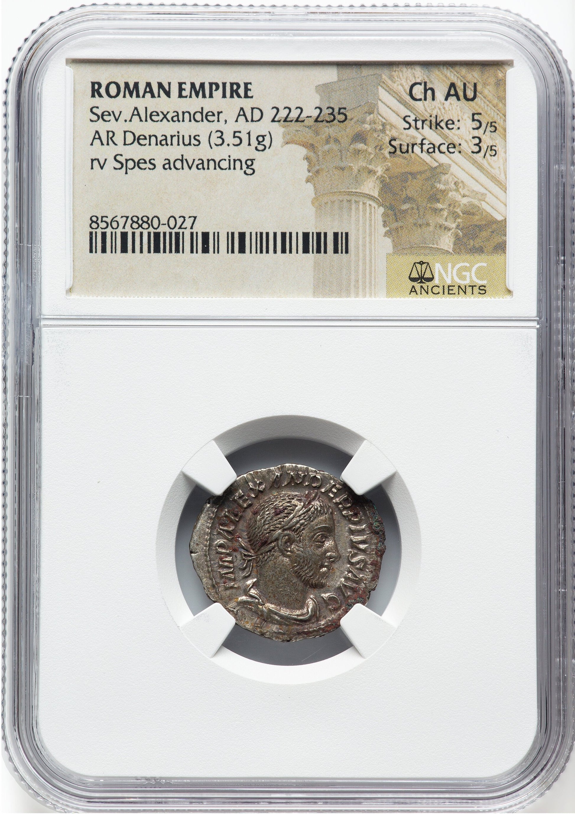 Roman Empire - Severus Alexander - Silver Denarius - NGC Ch AU - RIC:254