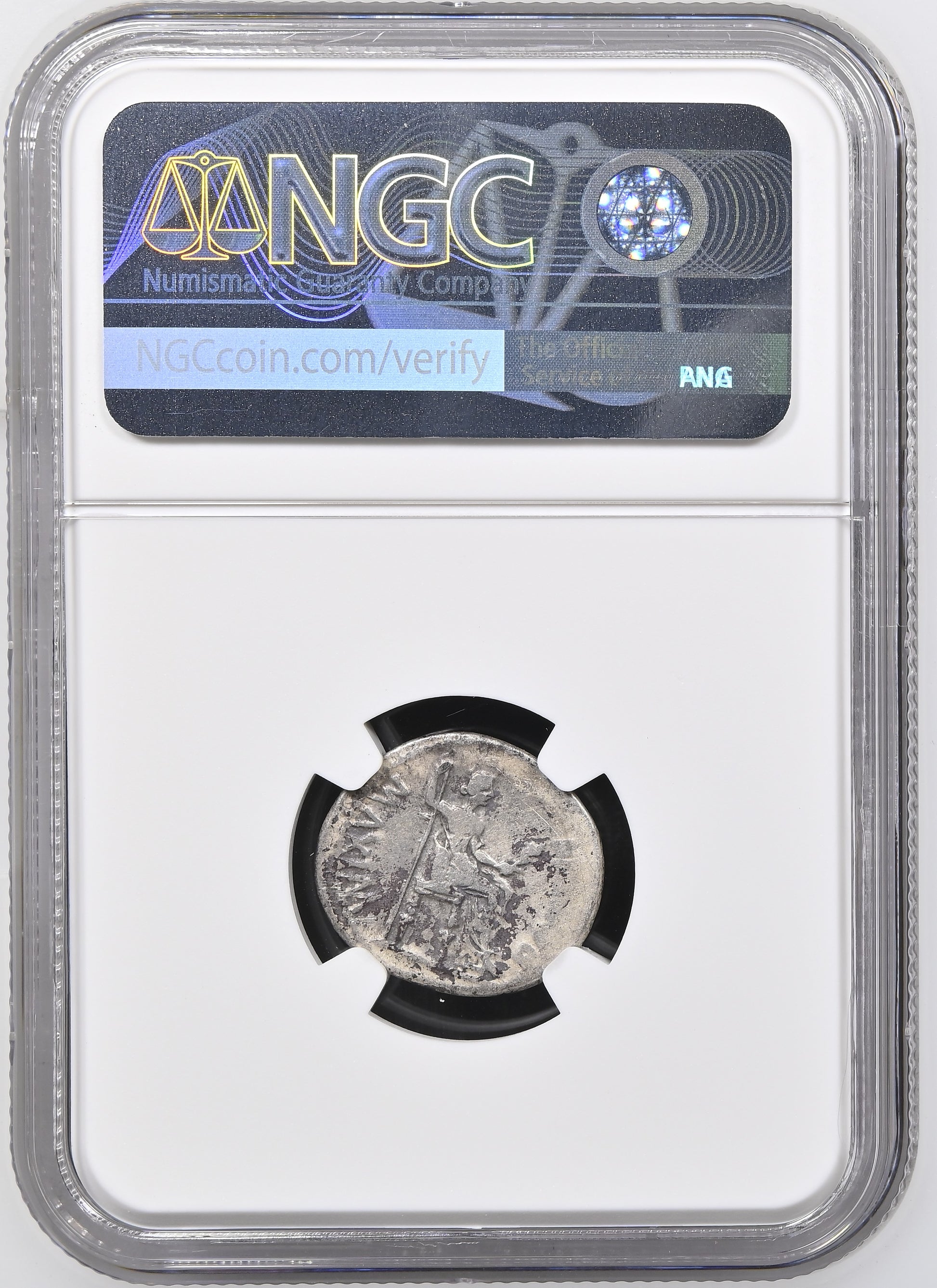 Roman Empire - Tiberius - Silver Denarius - NGC Ch F - RIC:30