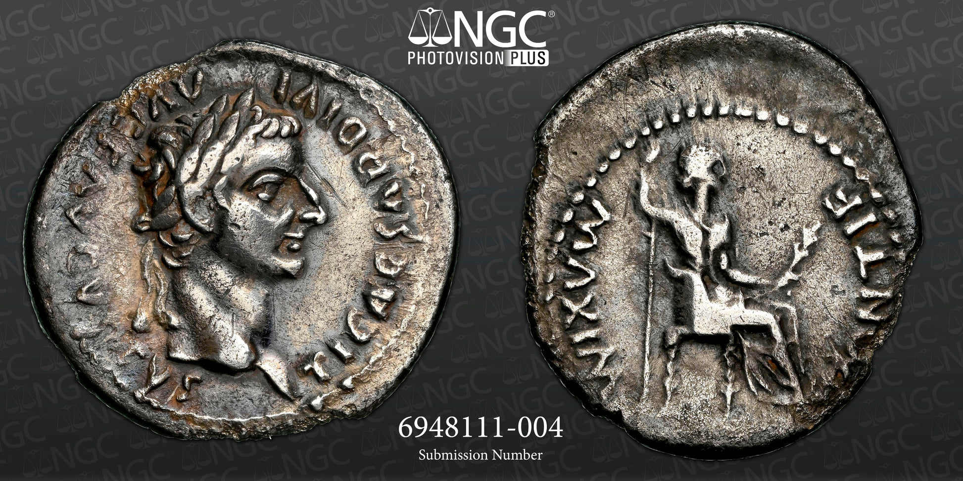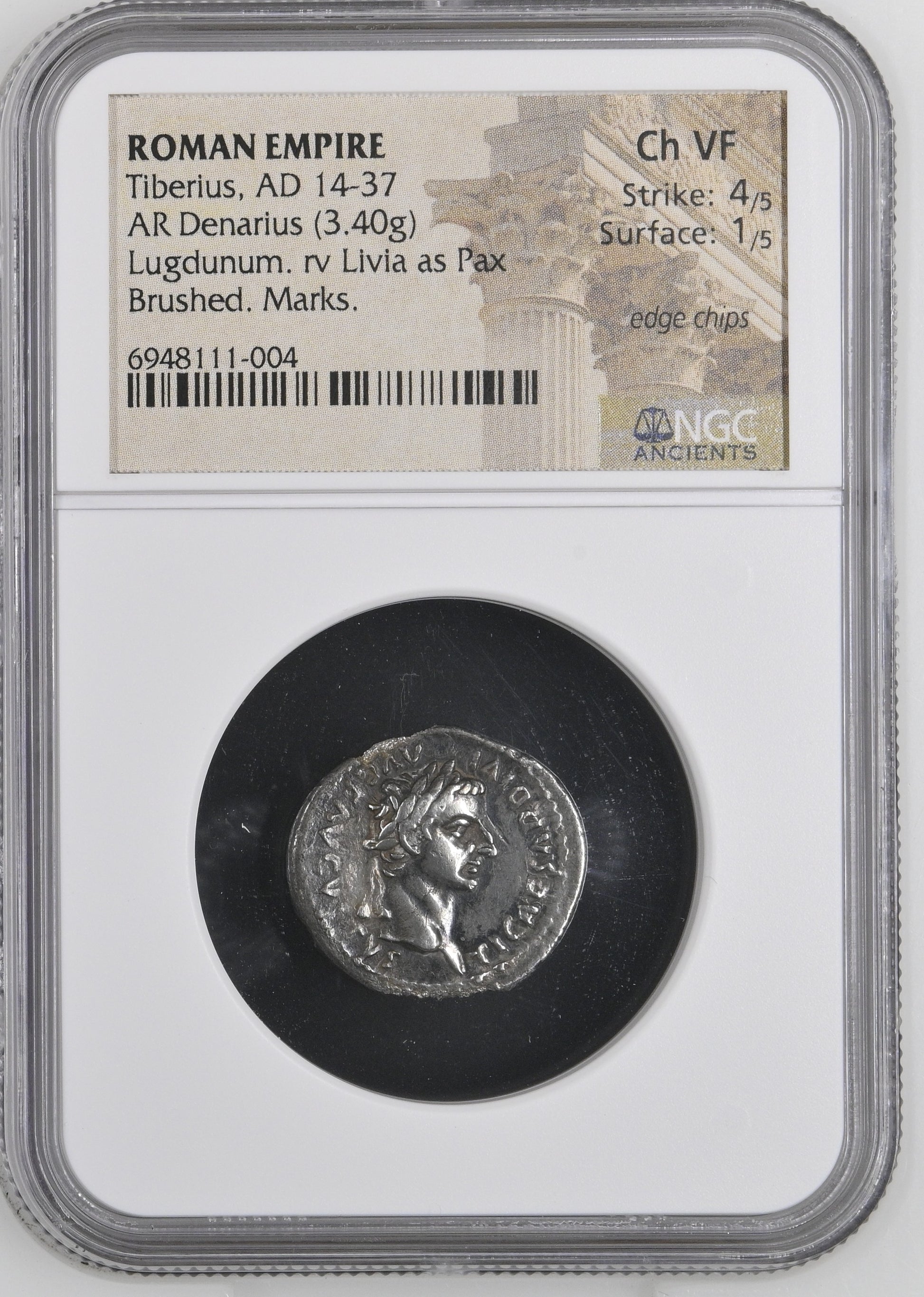 Roman Empire - Tiberius - Silver Denarius - NGC Ch VF - RIC:30