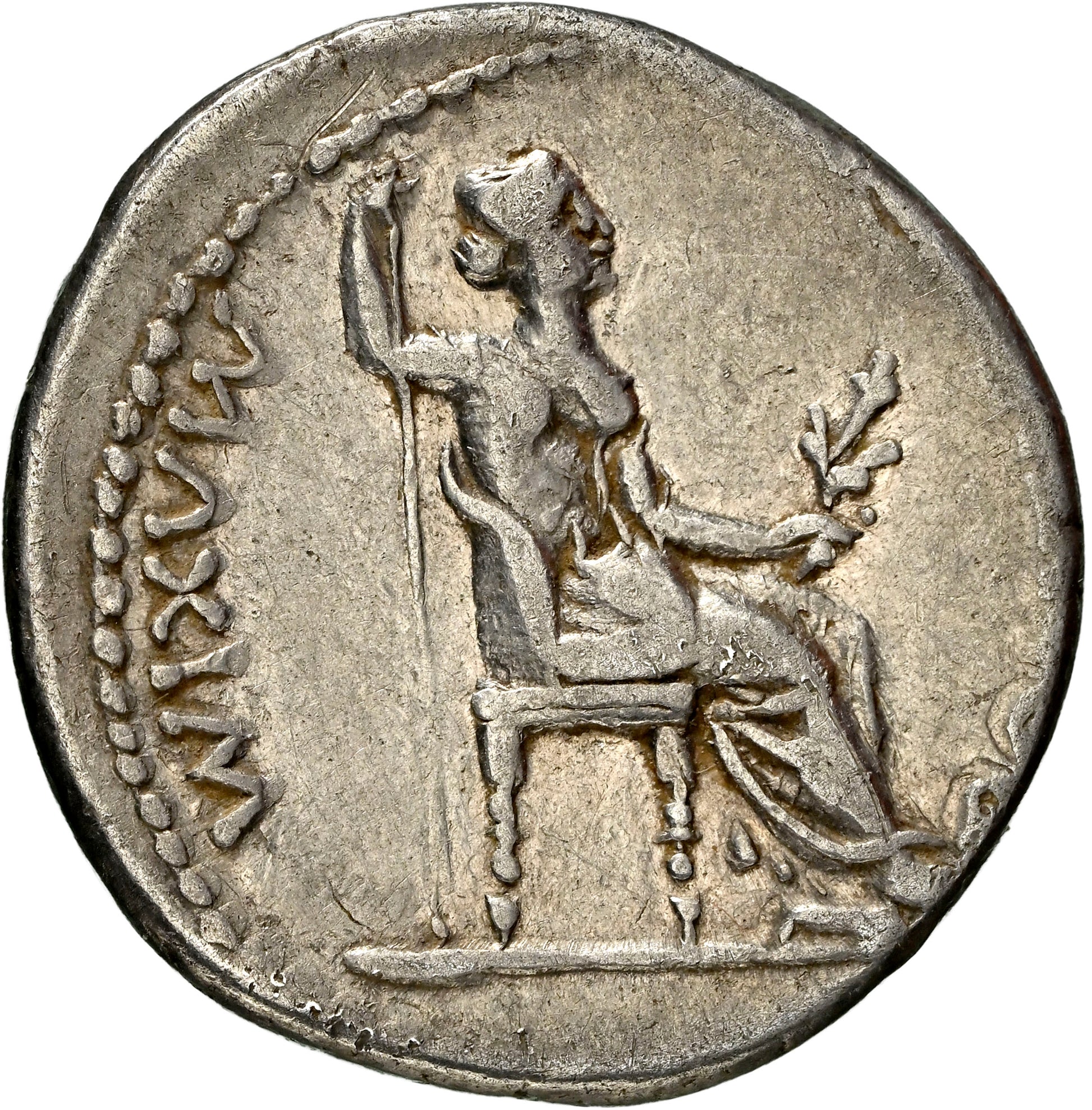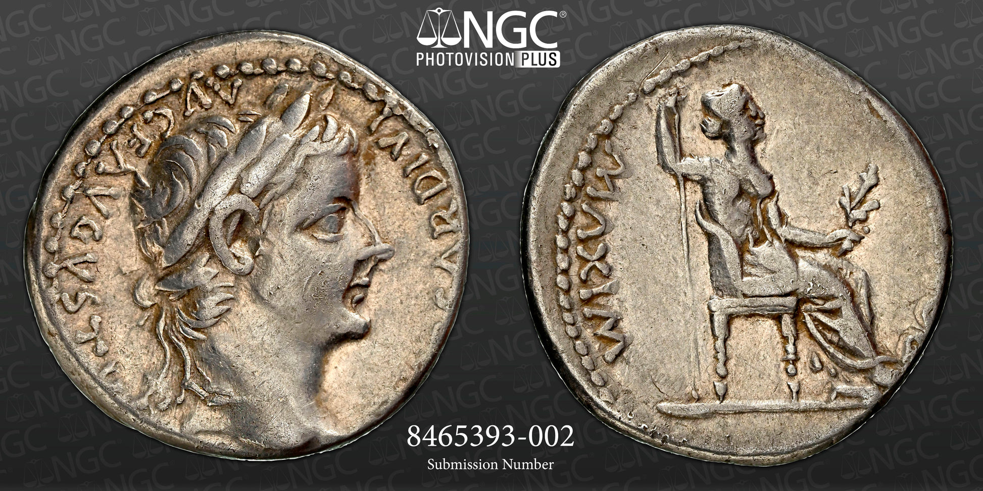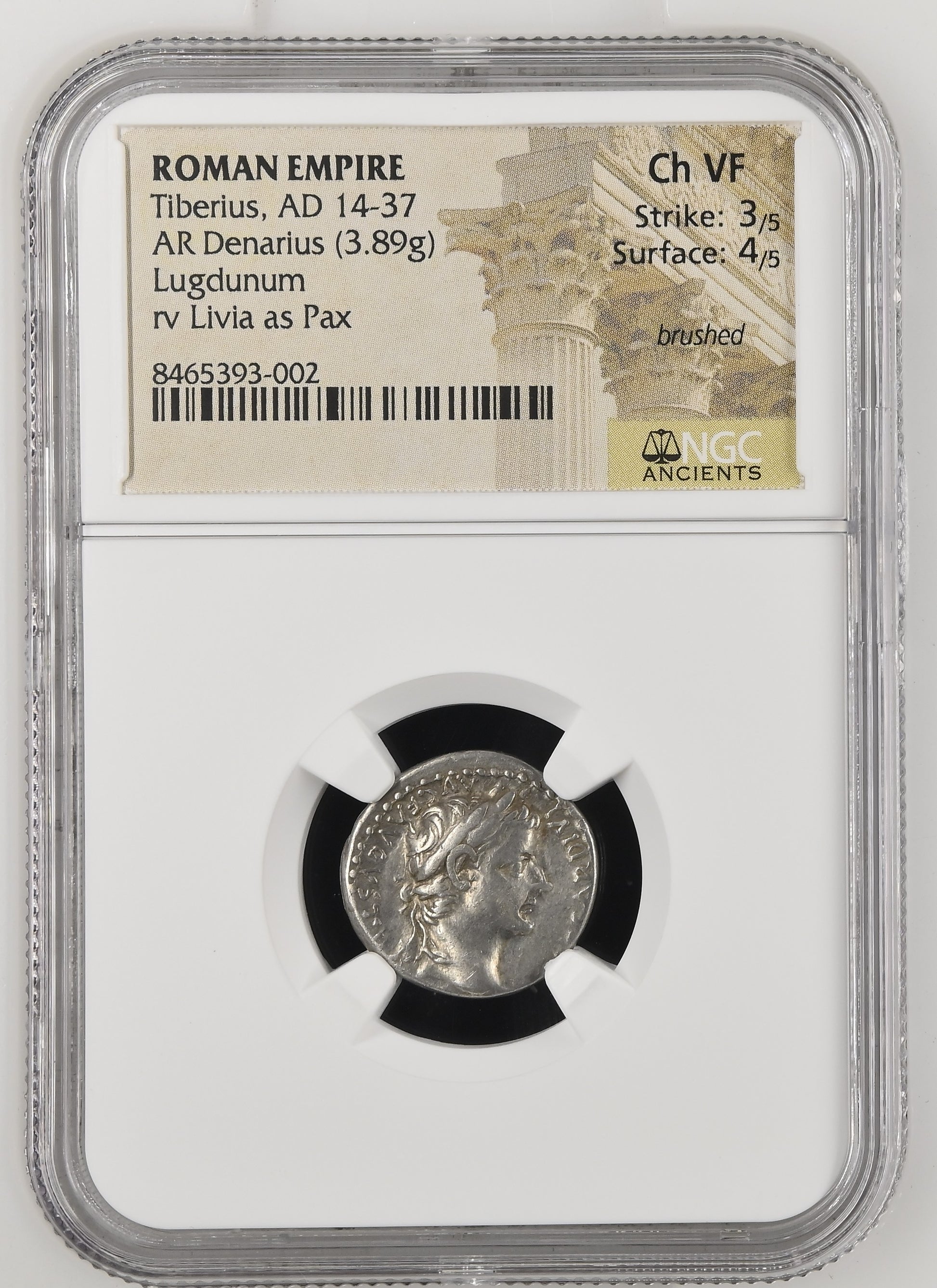Roman Empire - Tiberius - Silver Denarius - NGC Ch VF - RIC:30