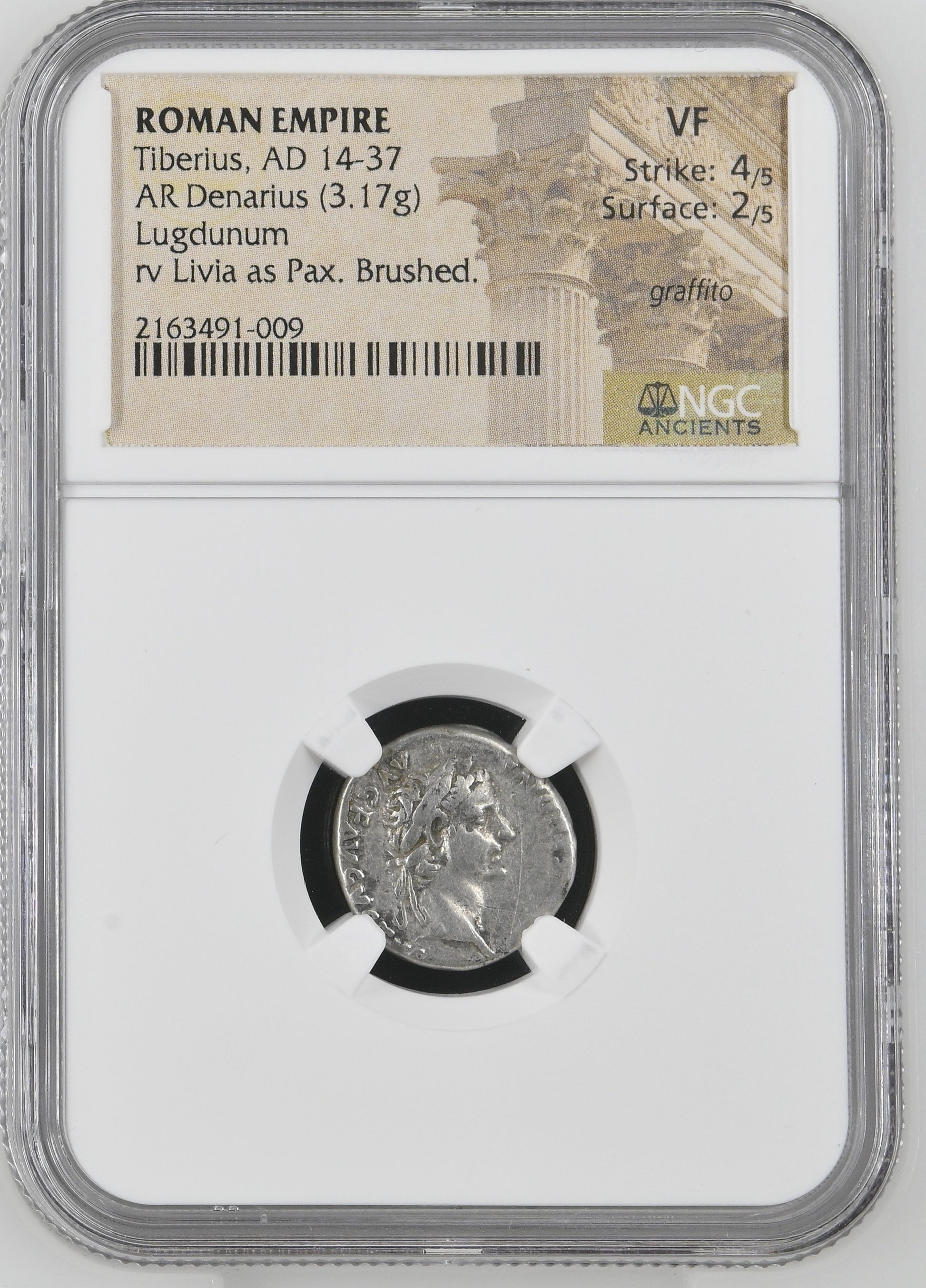 Roman Empire - Tiberius - Silver Denarius - NGC VF - RIC:30