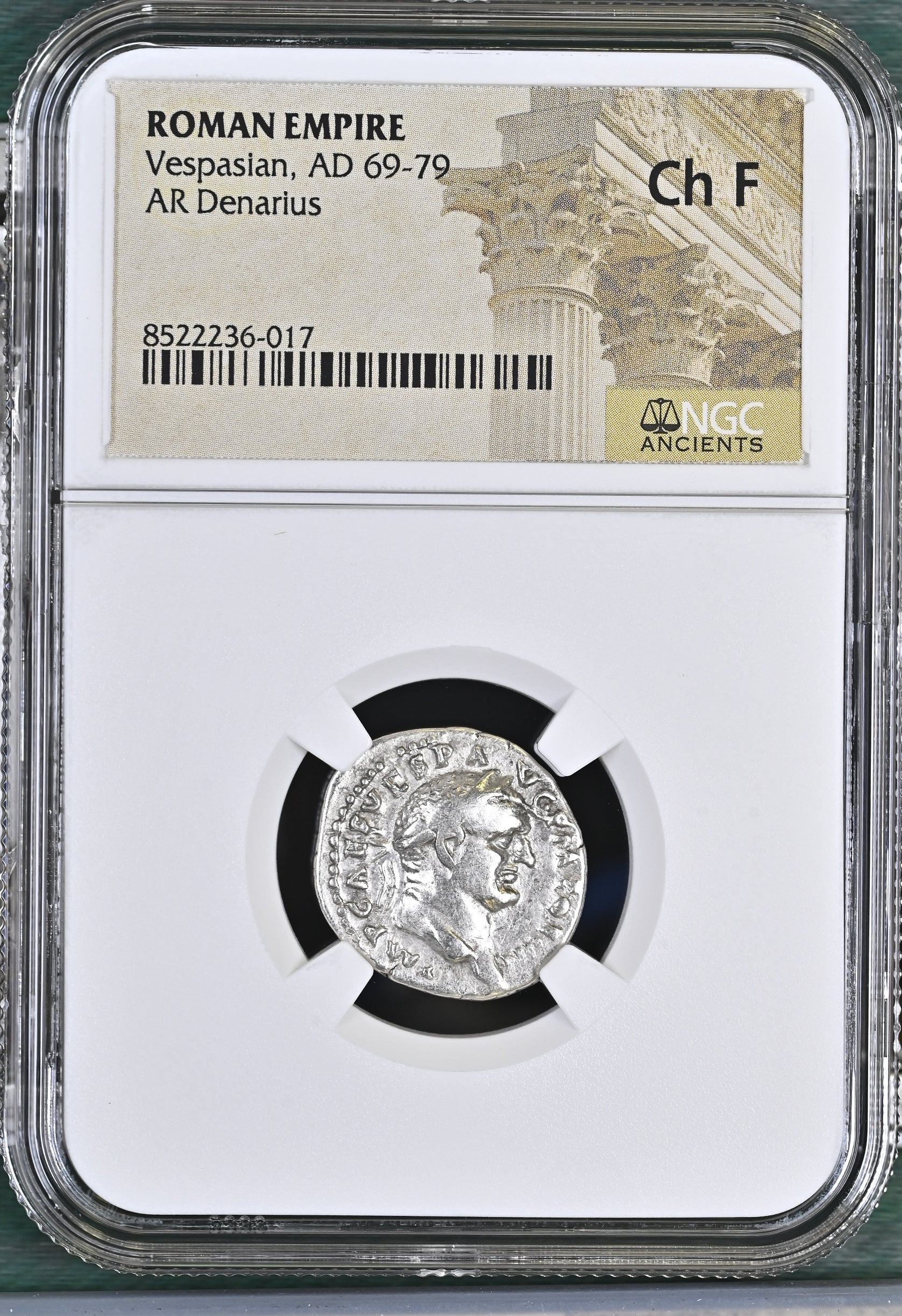 Roman Empire - Vespasian - Silver Denarius - NGC Ch F
