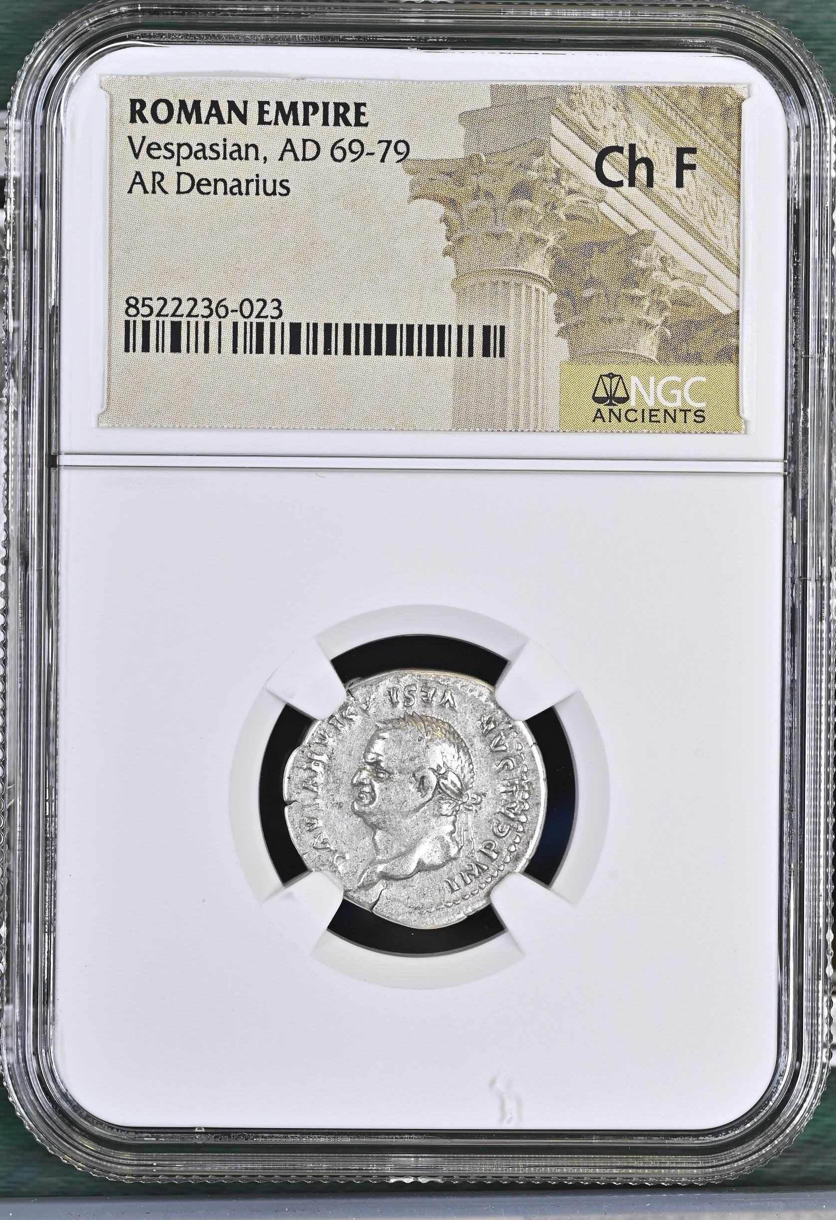 Roman Empire - Vespasian - Silver Denarius - NGC Ch F