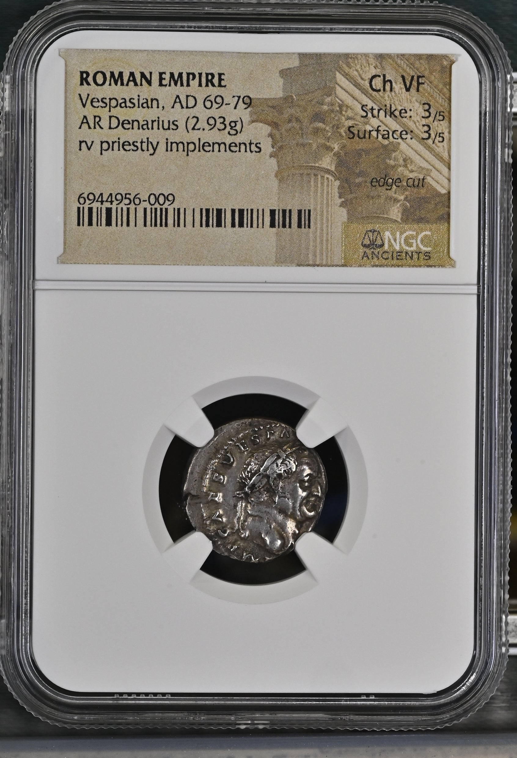 Roman Empire - Vespasian - Silver Denarius - NGC Ch VF - RIC:43