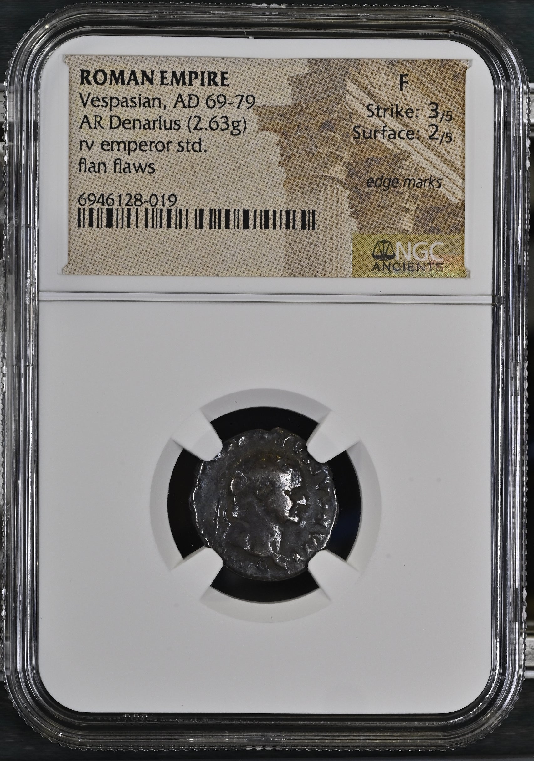 Roman Empire - Vespasian - Silver Denarius - NGC F - RIC:44