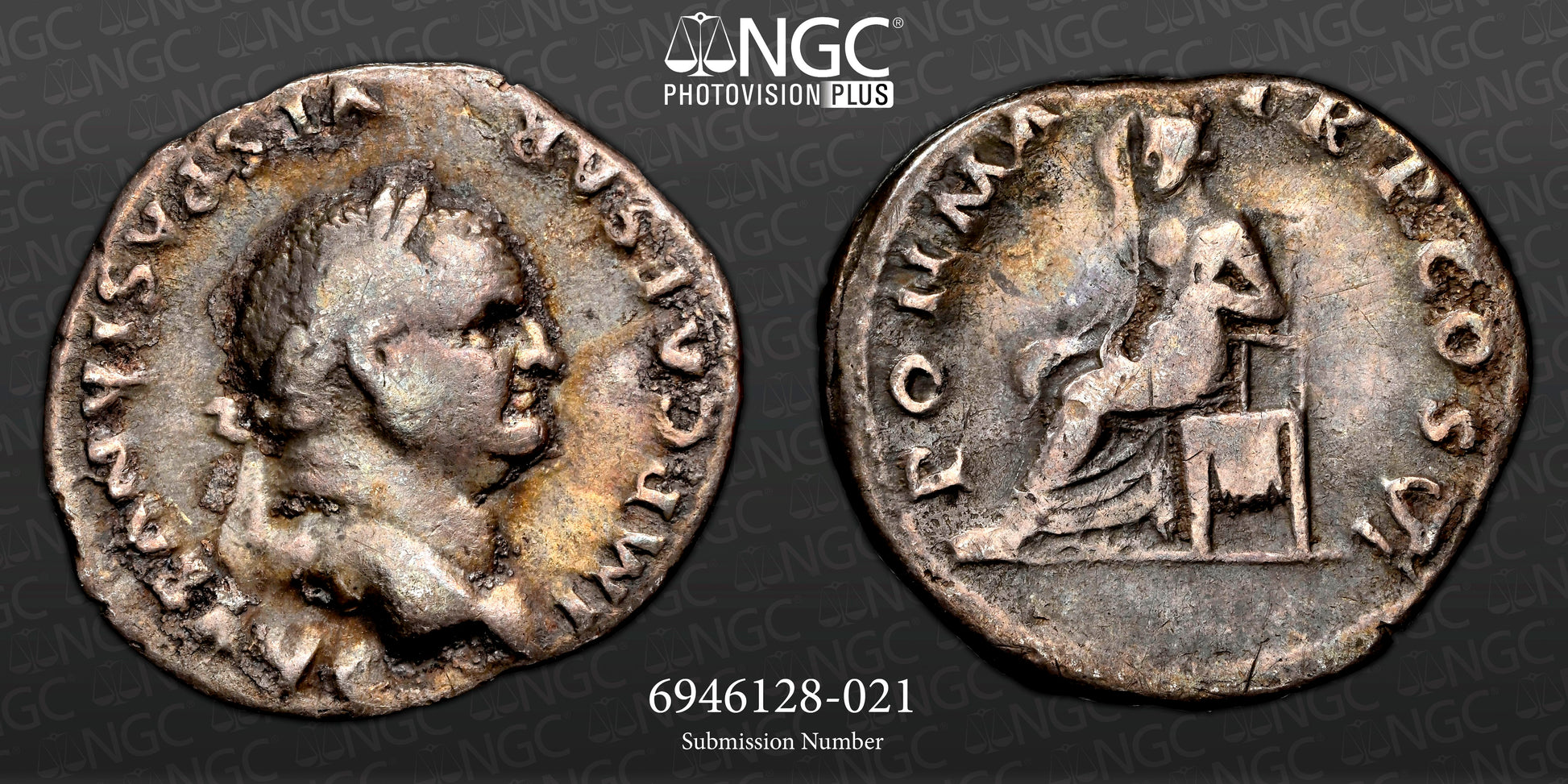 Roman Empire - Vespasian - Silver Denarius - NGC F - RIC:91