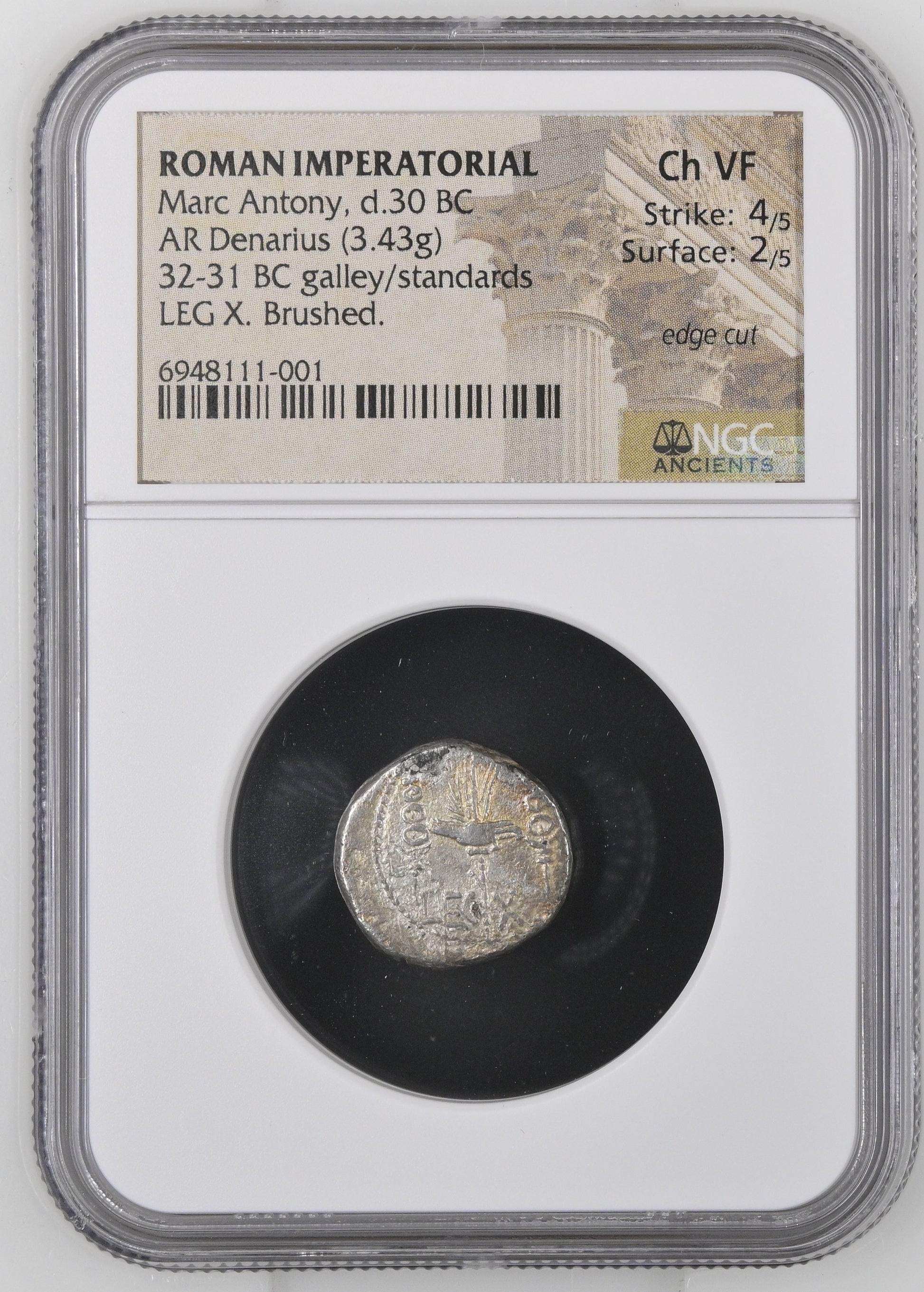 Roman Imperatorial - Marc Antony - Silver Denarius - NGC Ch VF - Crawf. 544/24