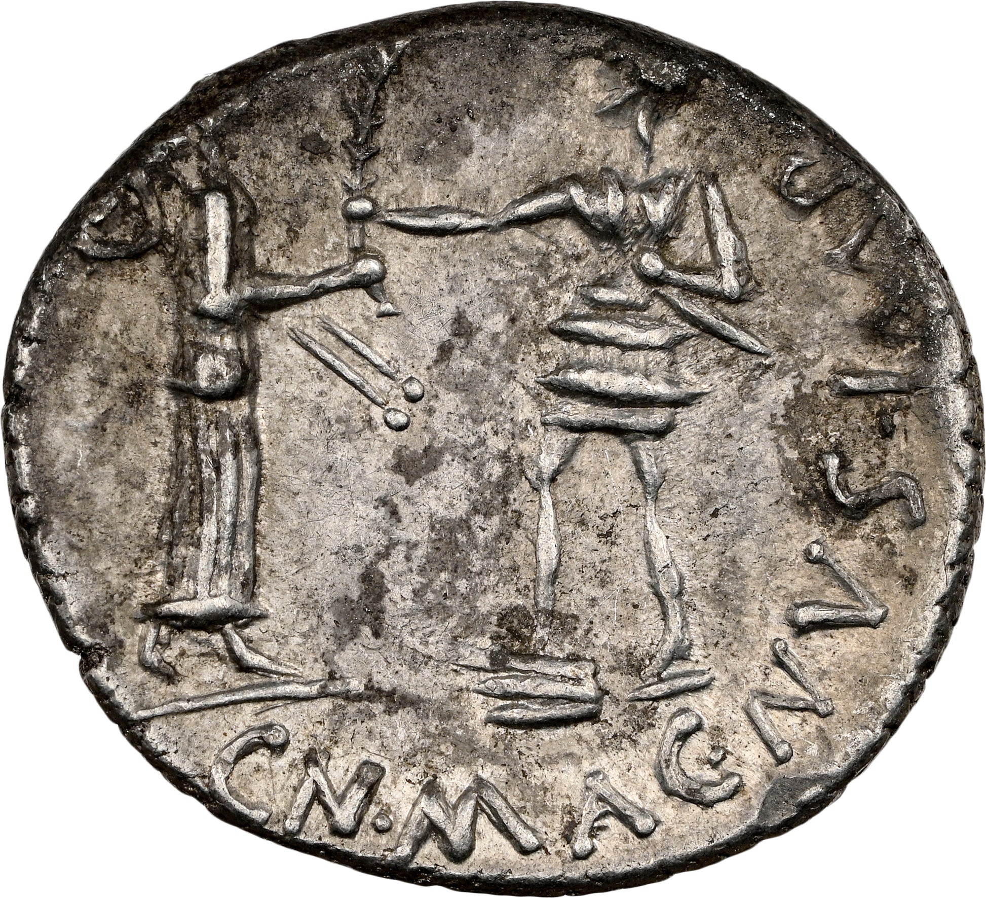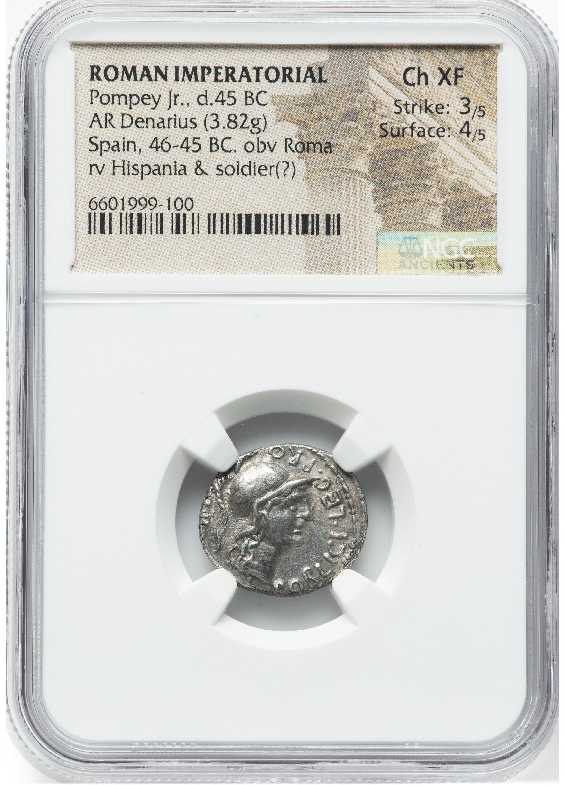 Roman Imperatorial - Pompey Junior - Silver Denarius - NGC Ch XF - Crawf. 469/1a
