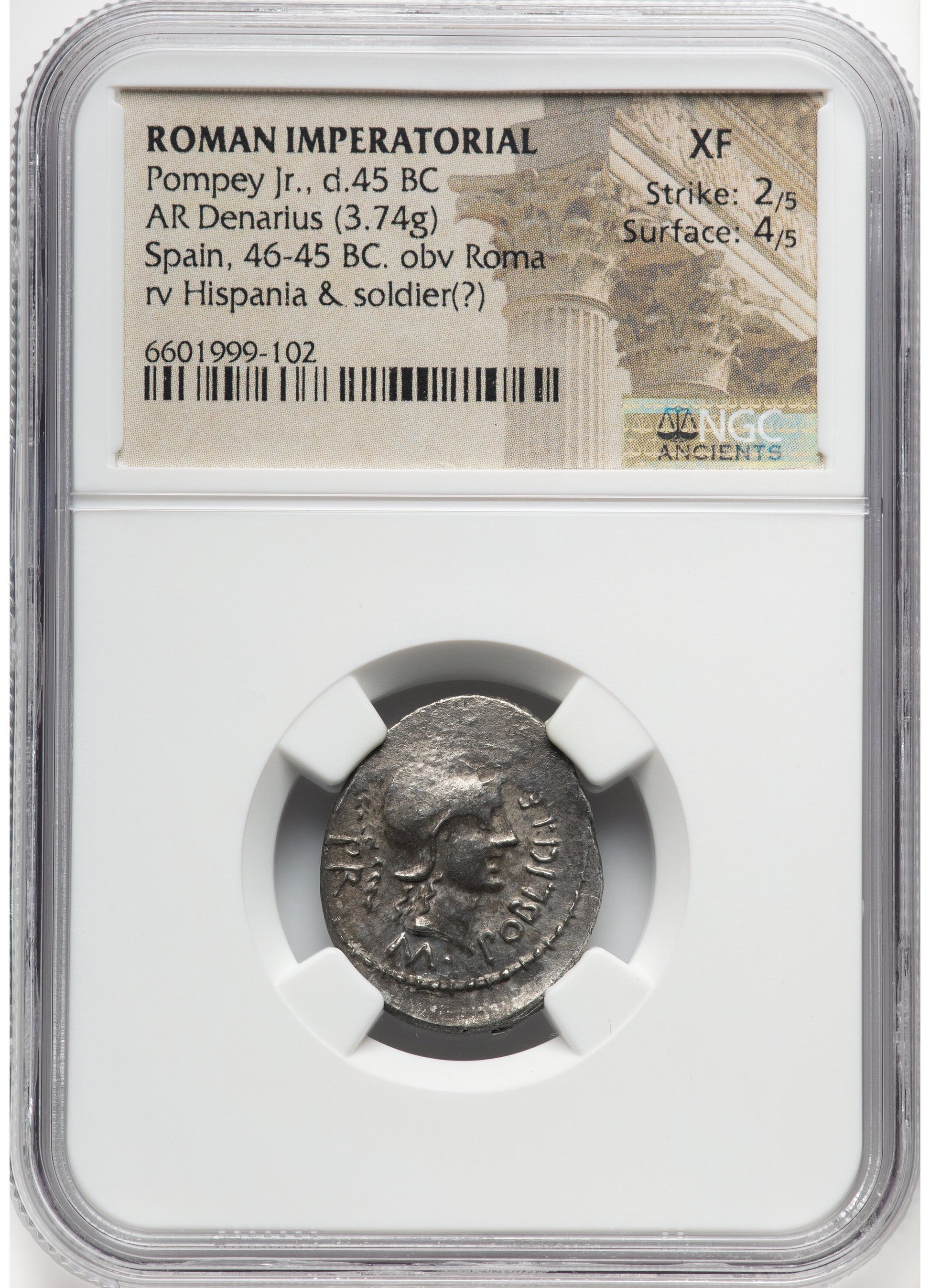 Roman Imperatorial - Pompey Junior - Silver Denarius - NGC XF - Crawf. 469/1a